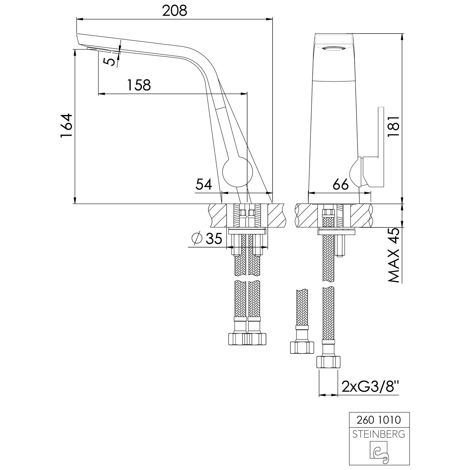 Steinberg Serie 260 Waschtisch-Einhebelmischbatterie ohne Ablaufgarnitur