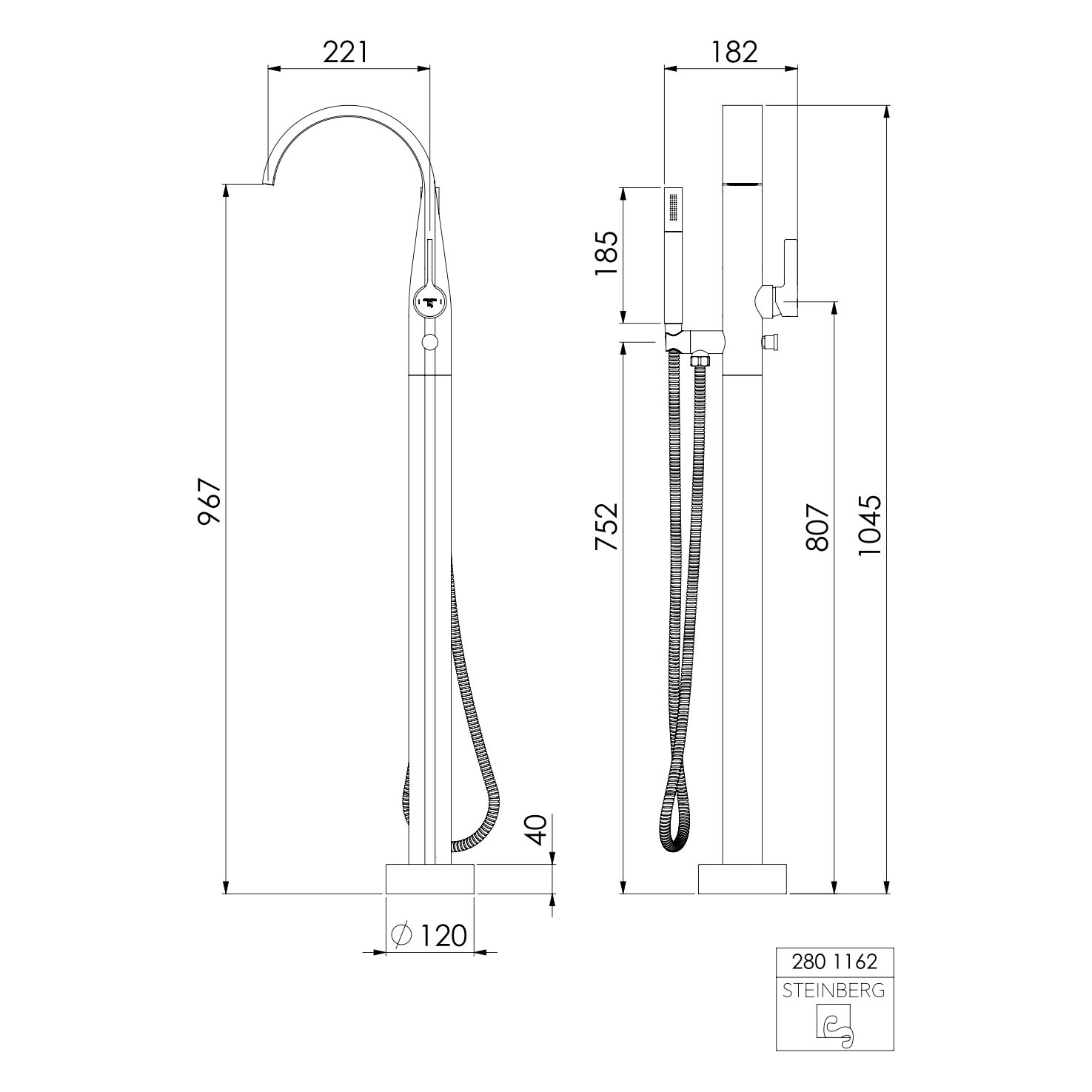 Steinberg Serie 280 Freistehende Wannen- und Brausearmatur