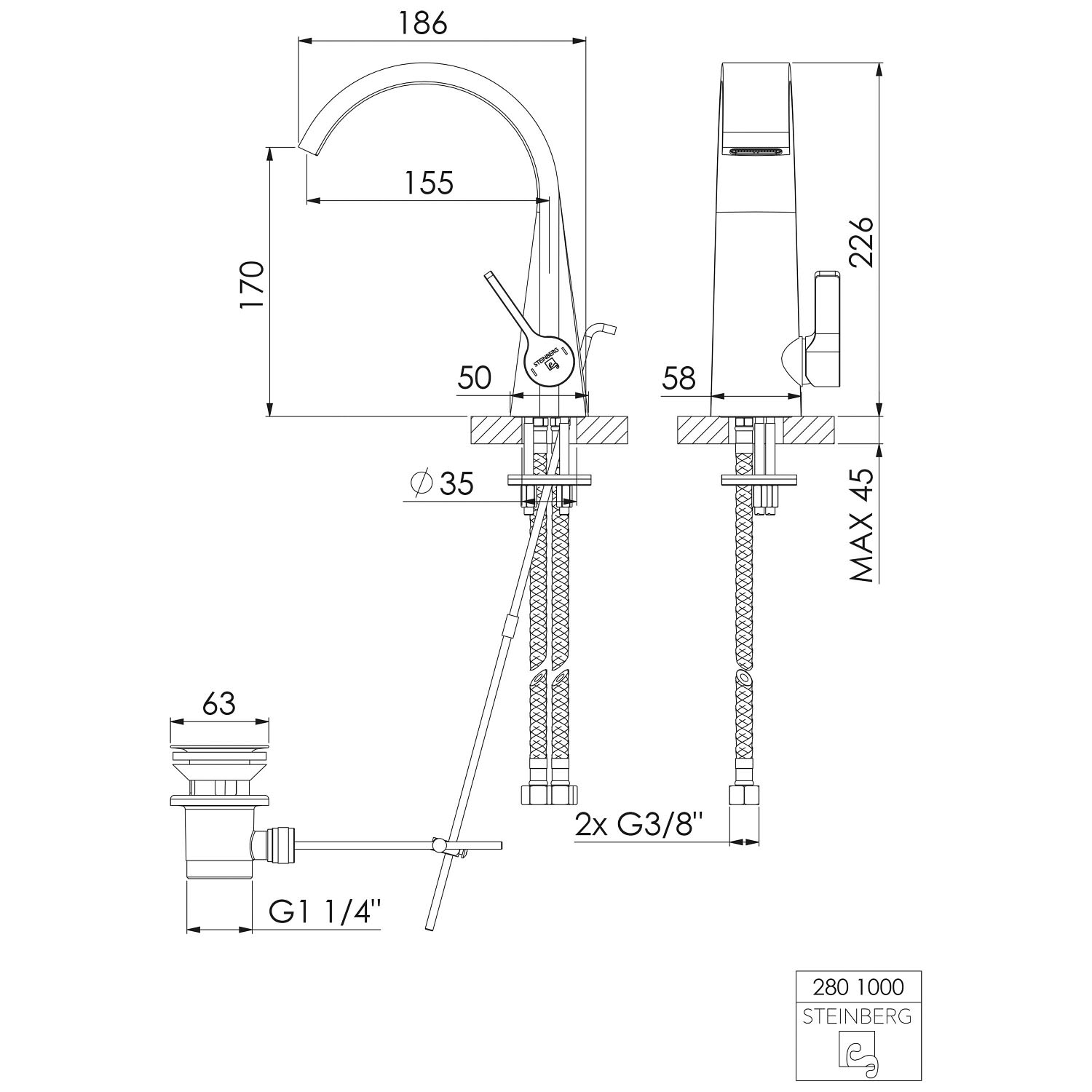 Steinberg Serie 280 Waschtisch-Einhebelmischer mit Ablaufgarnitur