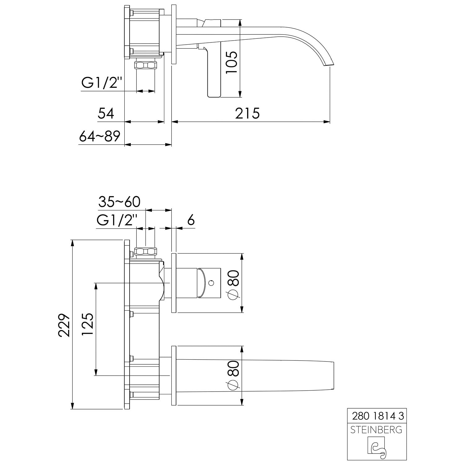Steinberg Serie 280 Fertigmontageset Wanne-/Brausearmatur Unterputz