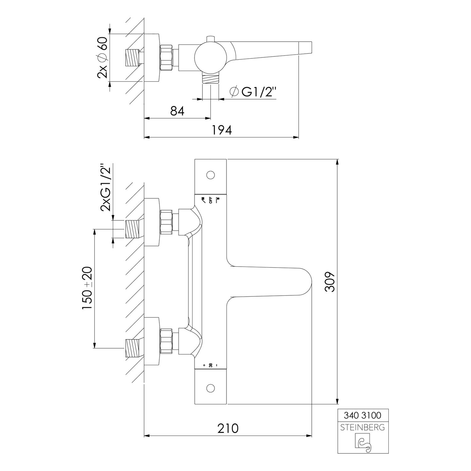 Steinberg Serie 340 Wanne/Brause-Aufputz-Thermostat