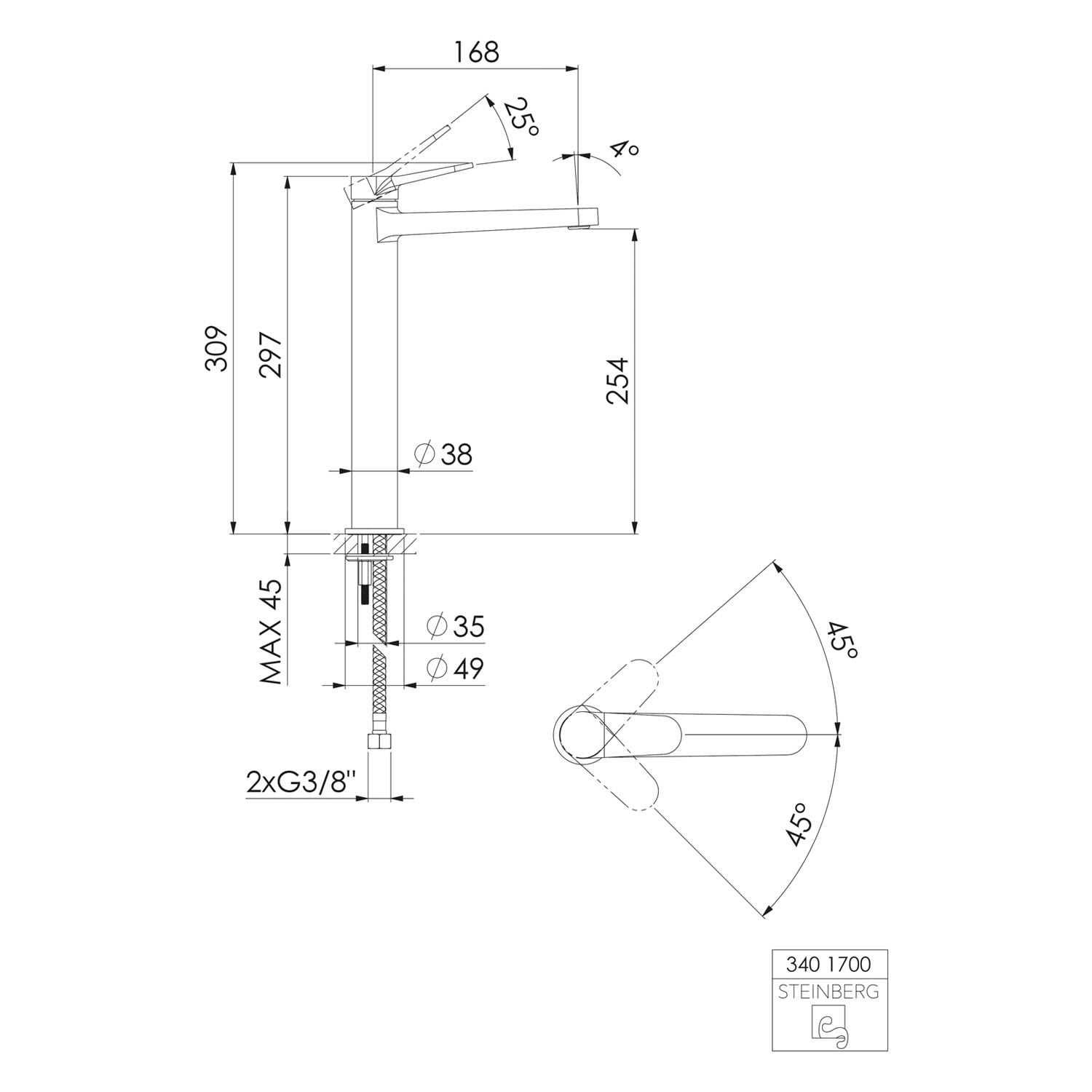 Steinberg Serie 340 Waschtisch-Einhebelmischer ohne Ablaufgarnitur