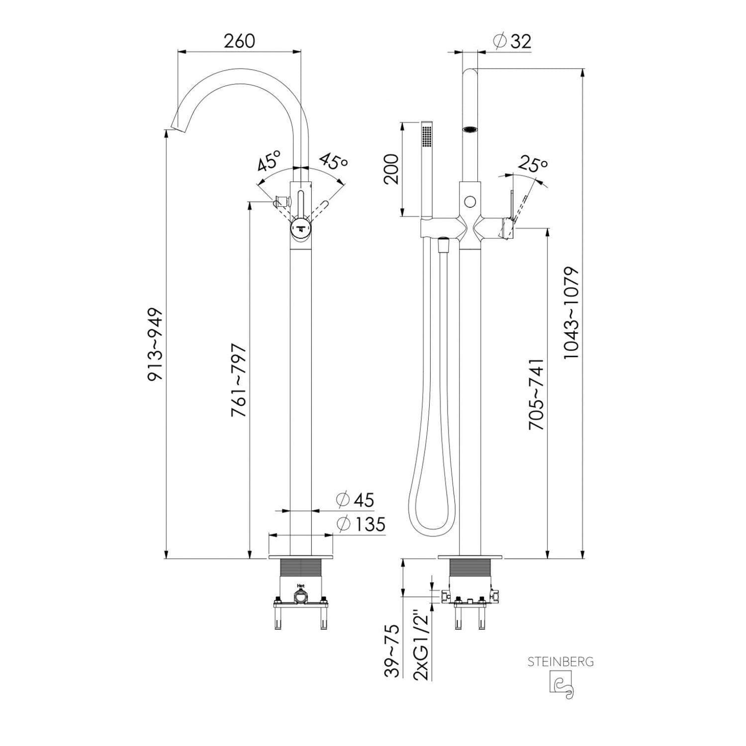 Steinberg Serie 341 Freistehende Wannen-Armatur