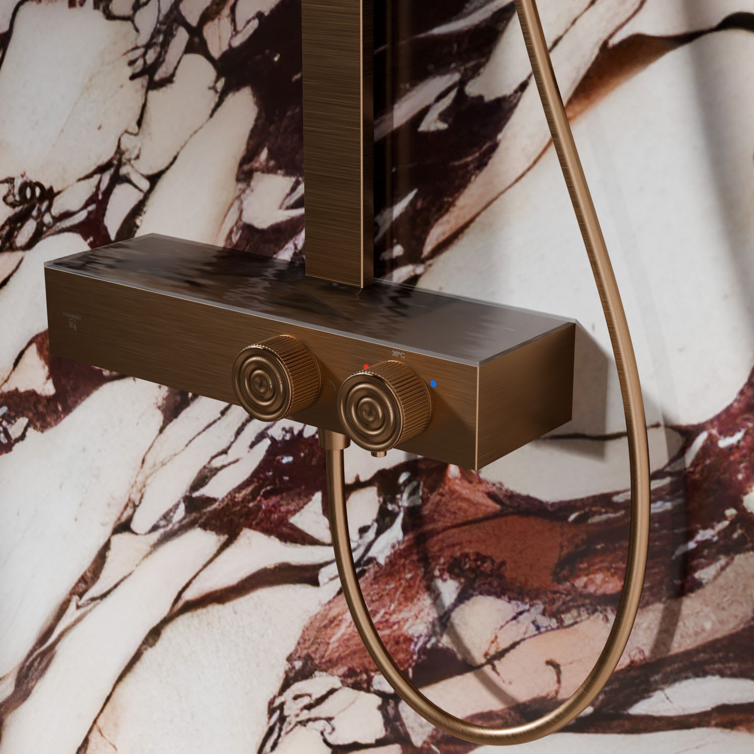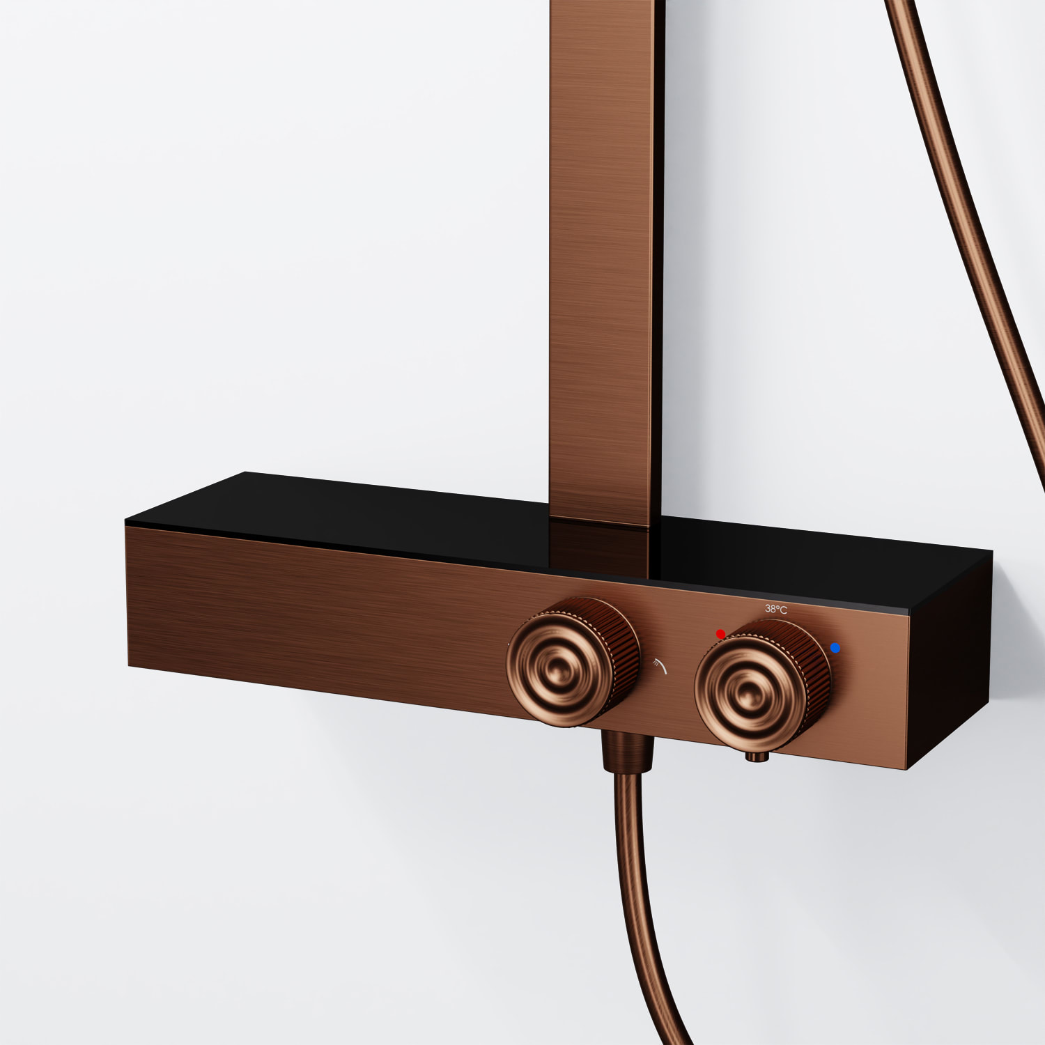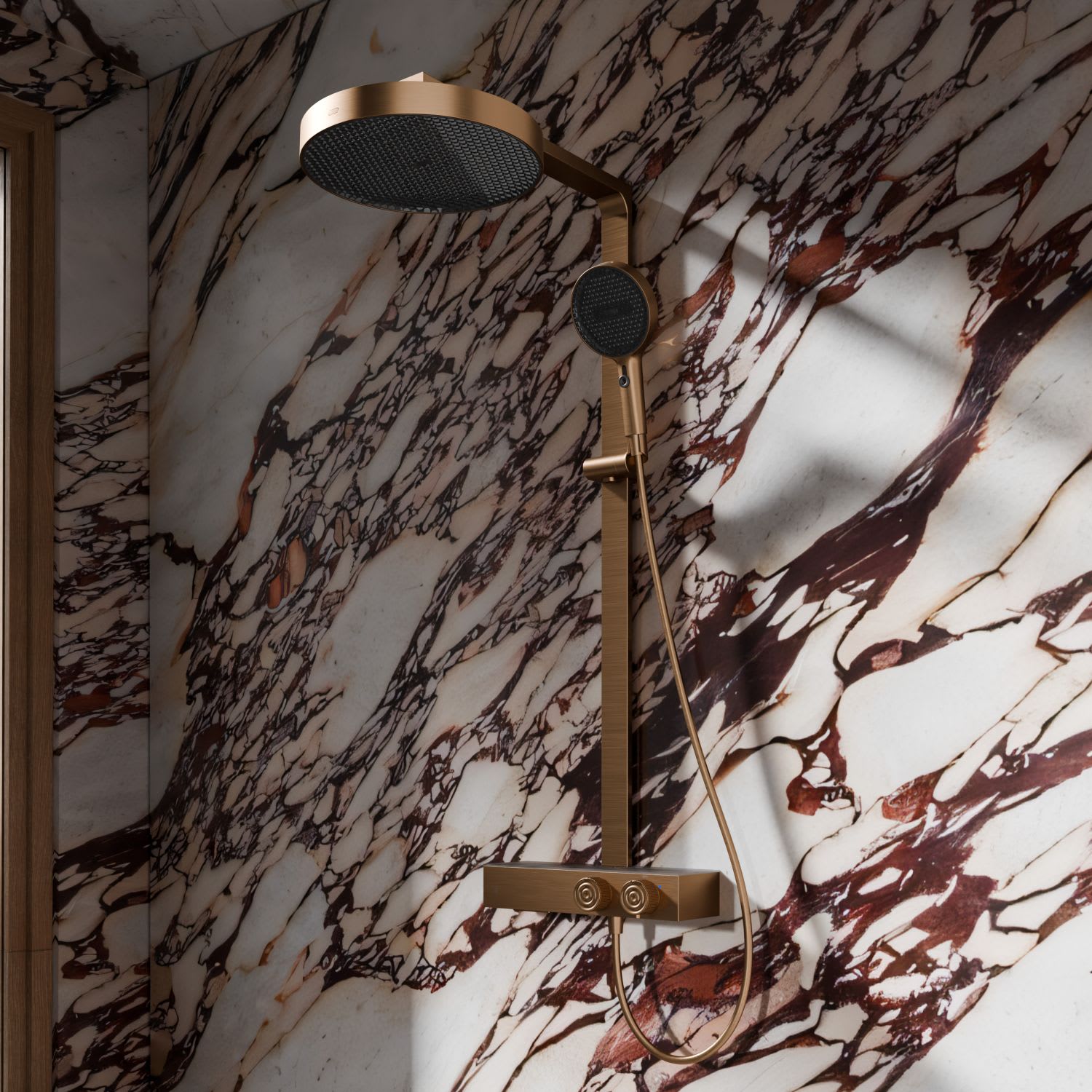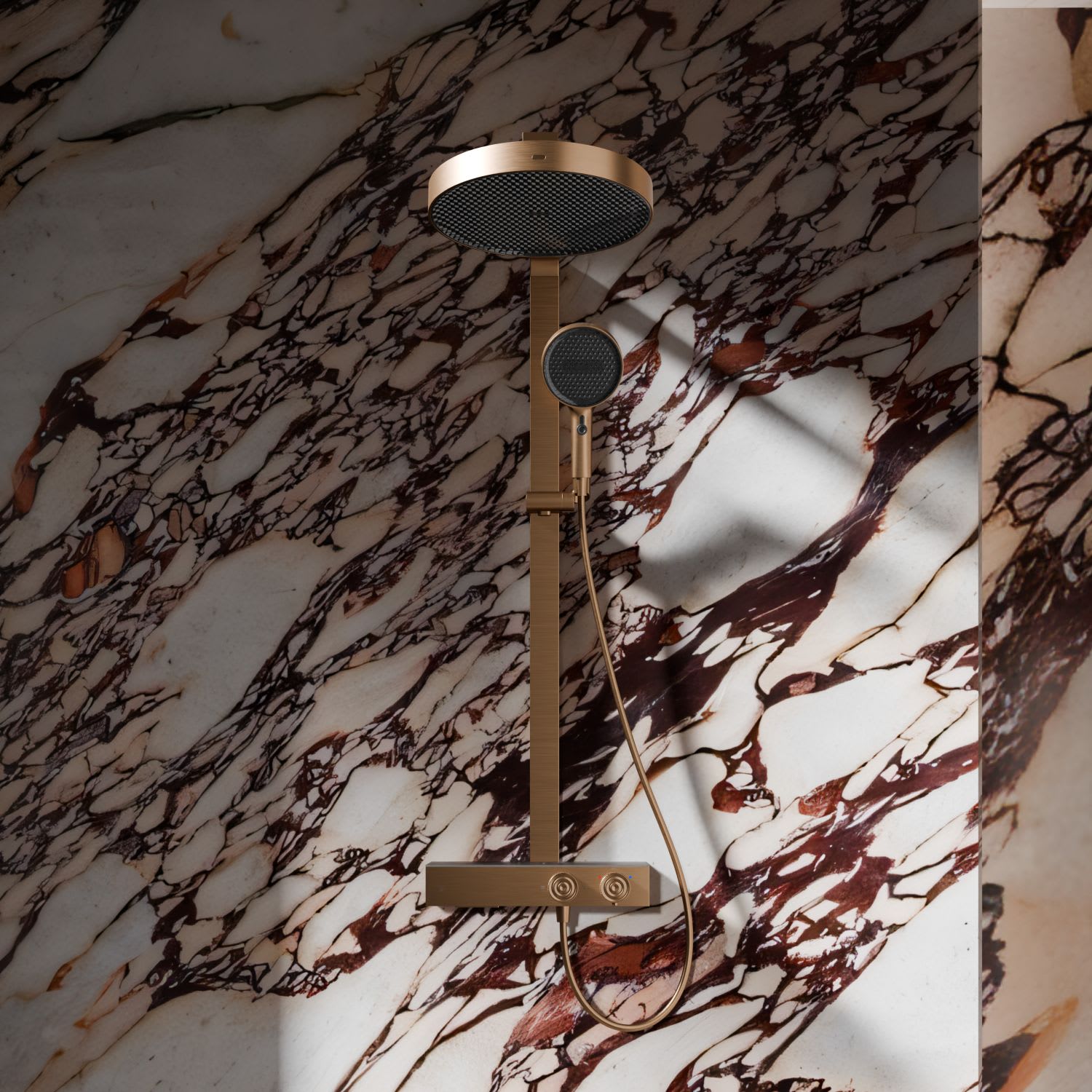 Erhältlich in verschiedenen hochwertigen Oberflächen lässt sich das Duschsystem individuell auf unterschiedliche Raumkonzepte abstimmen. Jede Oberfläche überzeugt durch ihre beständige Qualität und eine präzise Ausführung, die den Charakter des Materials betont.