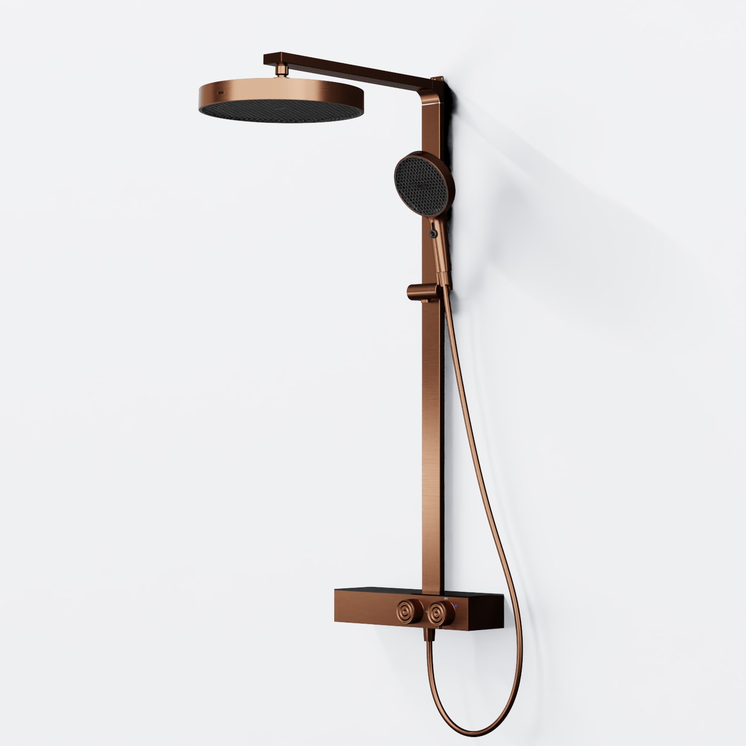 Das Duschsystem steht für funktionale Klarheit und präzise Verarbeitung. Die Kombination aus großflächiger Kopfbrause und einer Handbrause mit zwei Strahlarten bietet Komfort und Flexibilität im täglichen Gebrauch. Mit sorgfältig ausgeführten Details, ausgewogenen Proportionen und langlebigen Materialien fügt sich das System stimmig in moderne Badkonzepte ein.