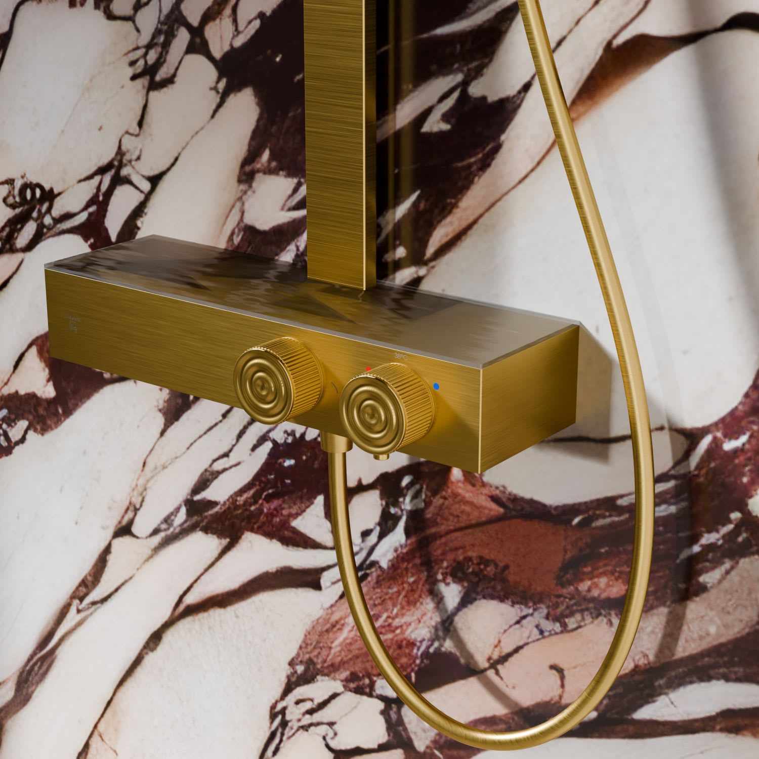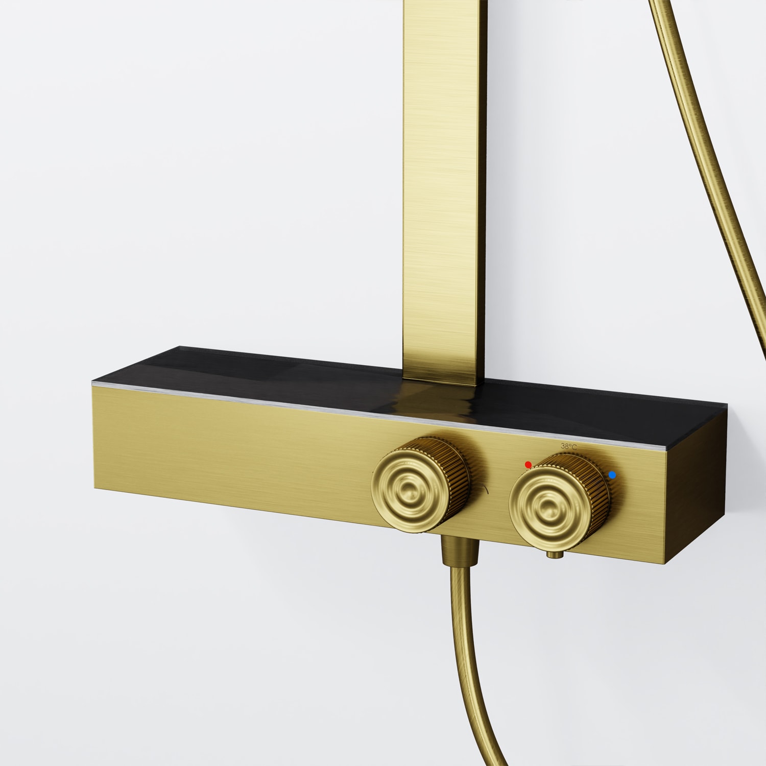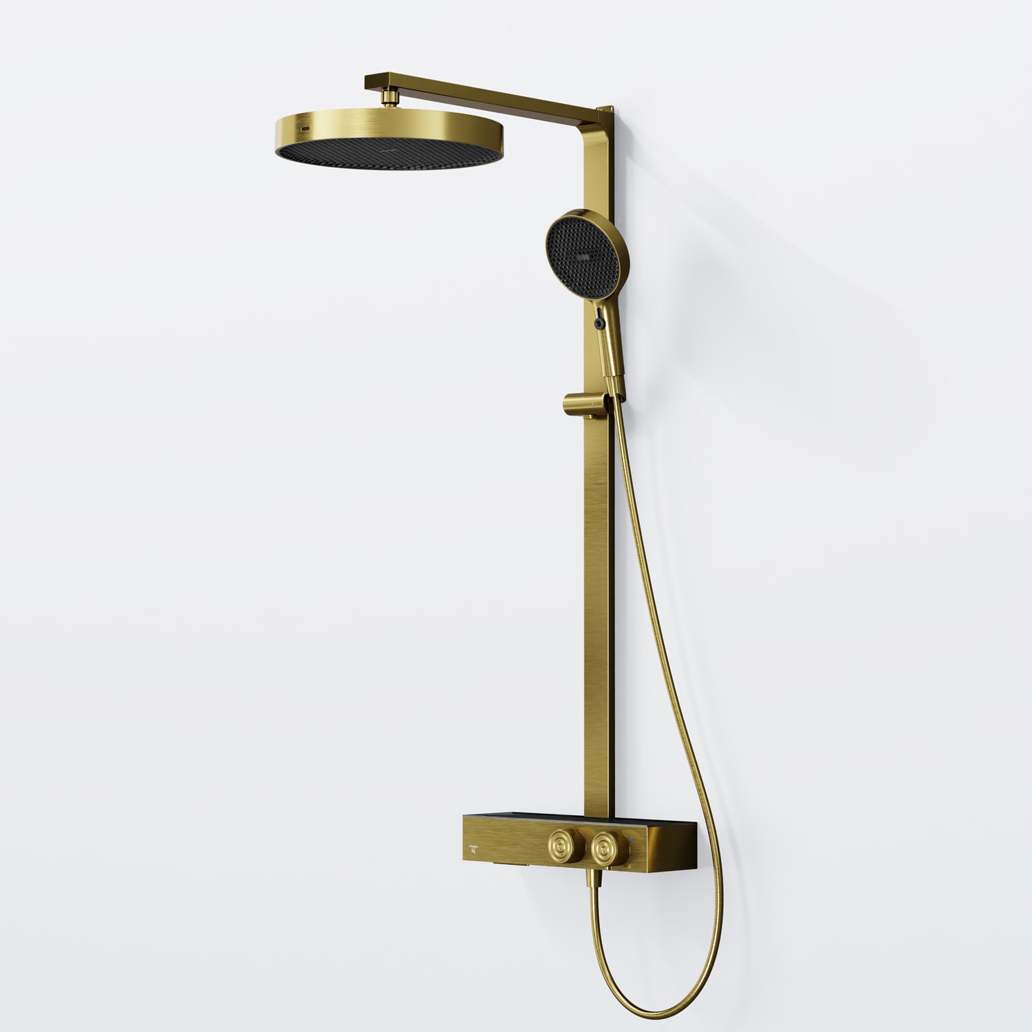 Das Duschsystem steht für funktionale Klarheit und präzise Verarbeitung. Die Kombination aus großflächiger Kopfbrause und einer Handbrause mit zwei Strahlarten bietet Komfort und Flexibilität im täglichen Gebrauch. Mit sorgfältig ausgeführten Details, ausgewogenen Proportionen und langlebigen Materialien fügt sich das System stimmig in moderne Badkonzepte ein.