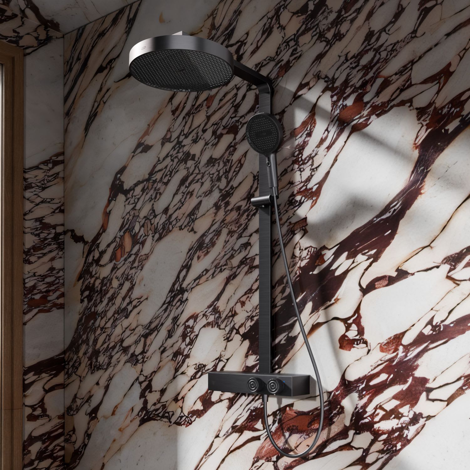 Erhältlich in verschiedenen hochwertigen Oberflächen lässt sich das Duschsystem individuell auf unterschiedliche Raumkonzepte abstimmen. Jede Oberfläche überzeugt durch ihre beständige Qualität und eine präzise Ausführung, die den Charakter des Materials betont.