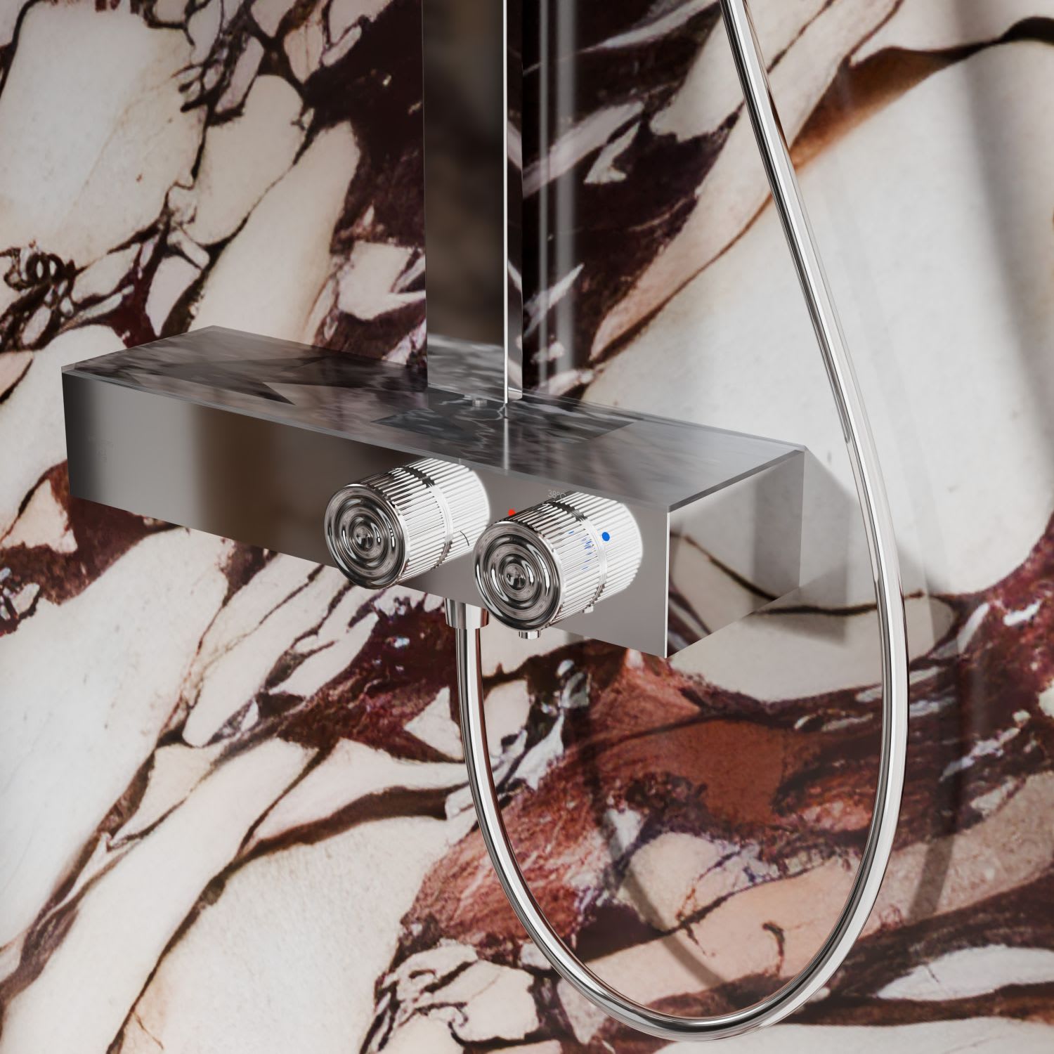 - Merkmale: höhenverstellbarer Handbrausehalter, verdeckte Anschlüsse, gleichmäßige Wasserführung