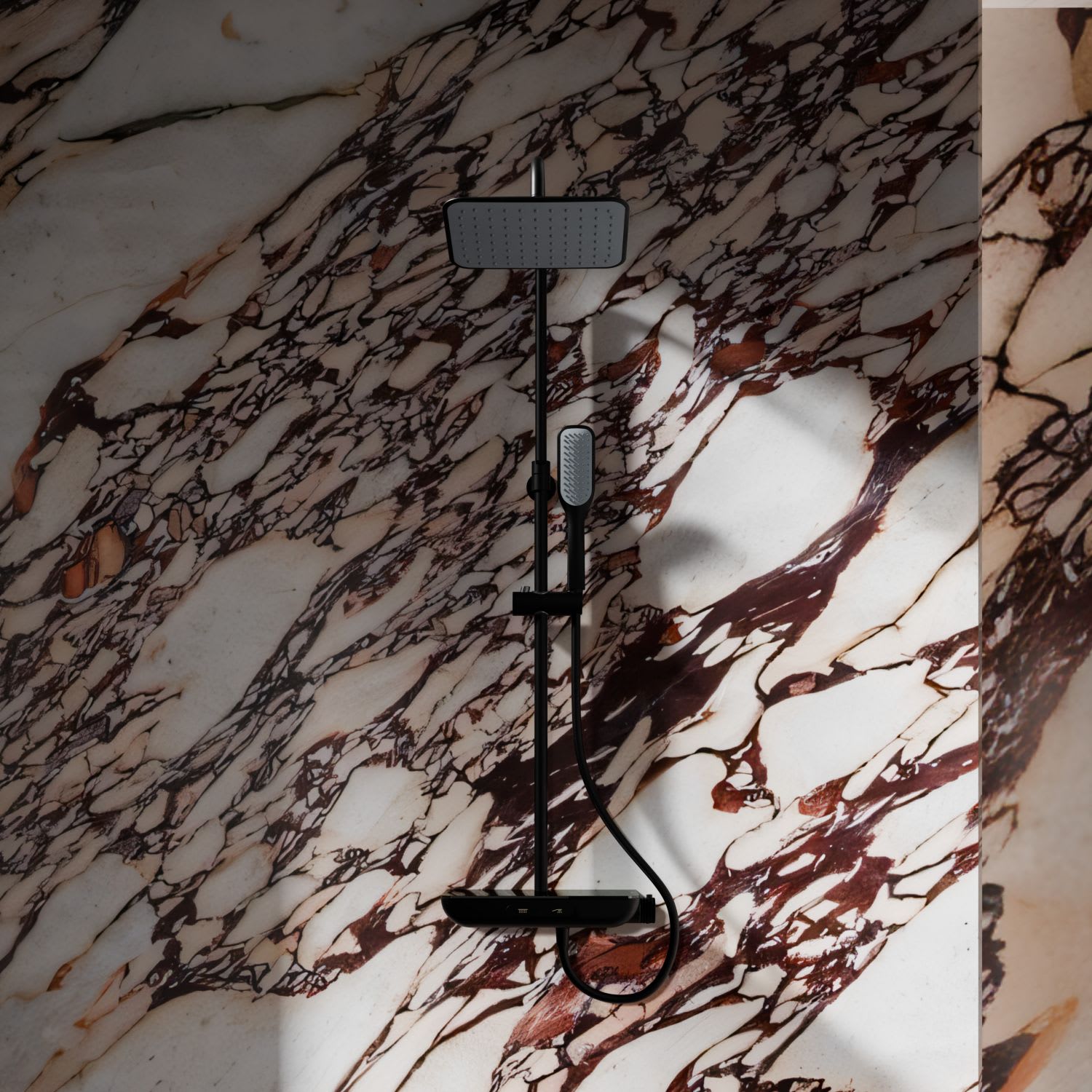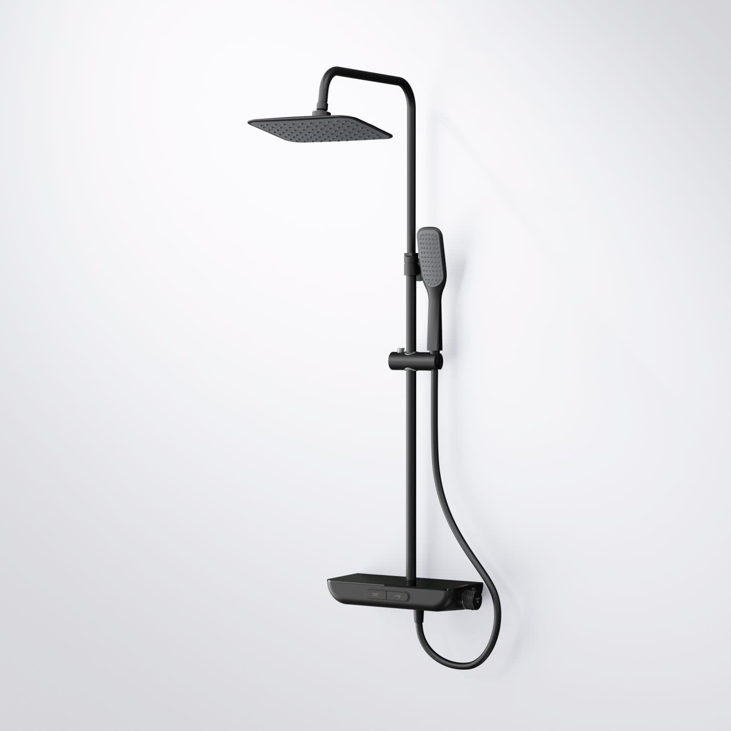 - Duschsystem mit Brausethermostat u. großzügiger Ablage aus Sicherheitsglas