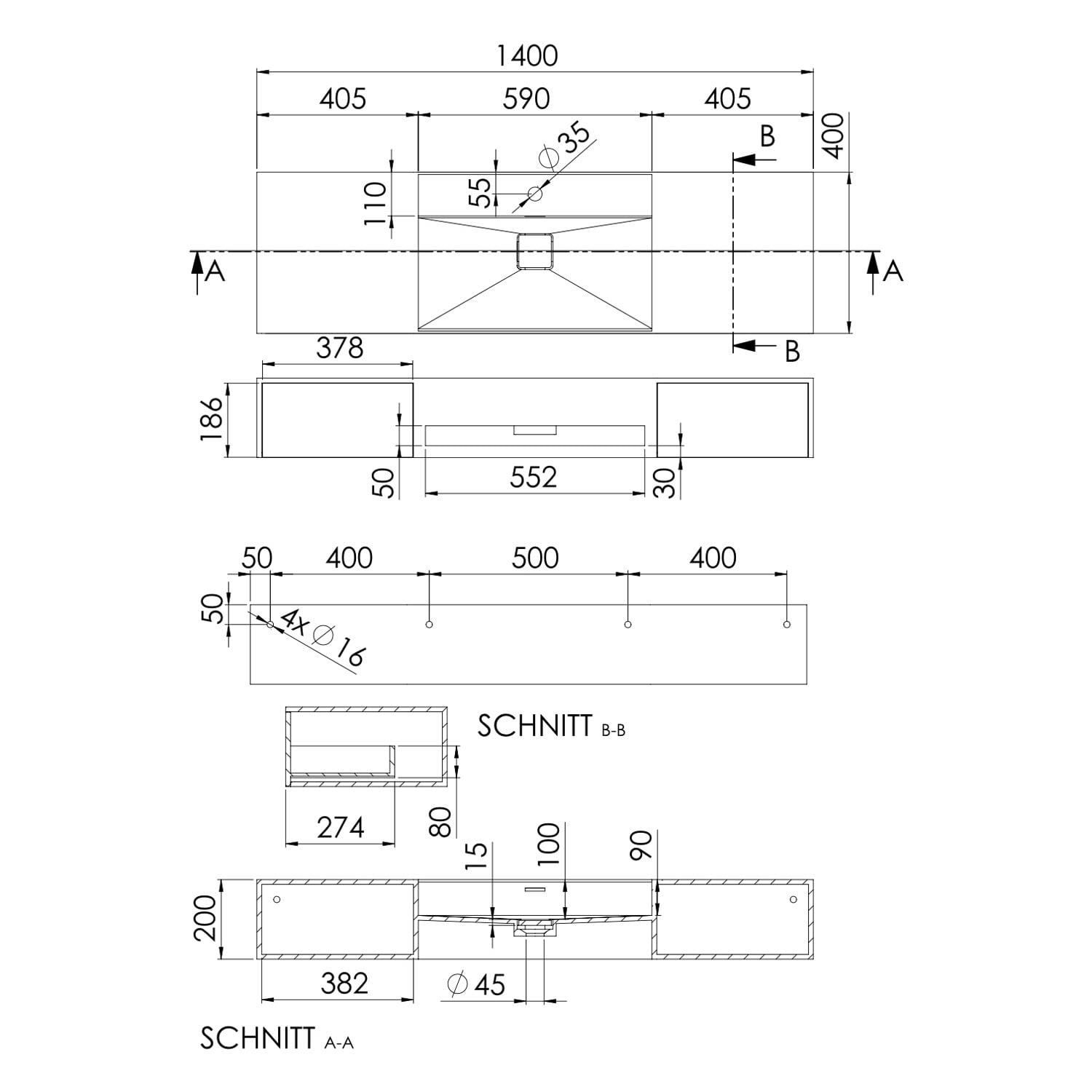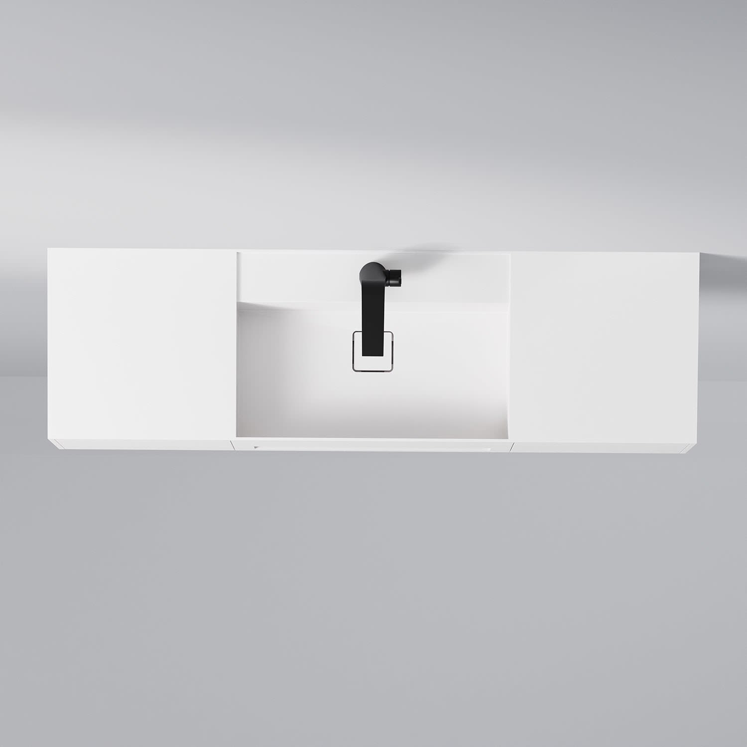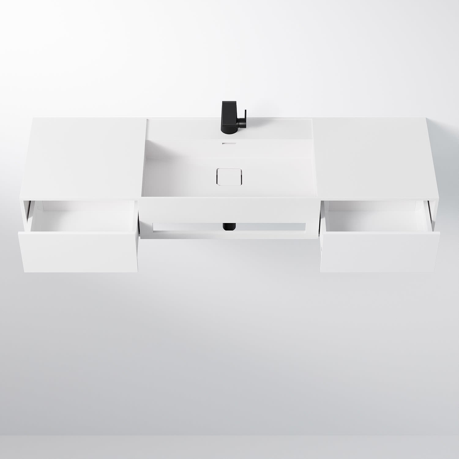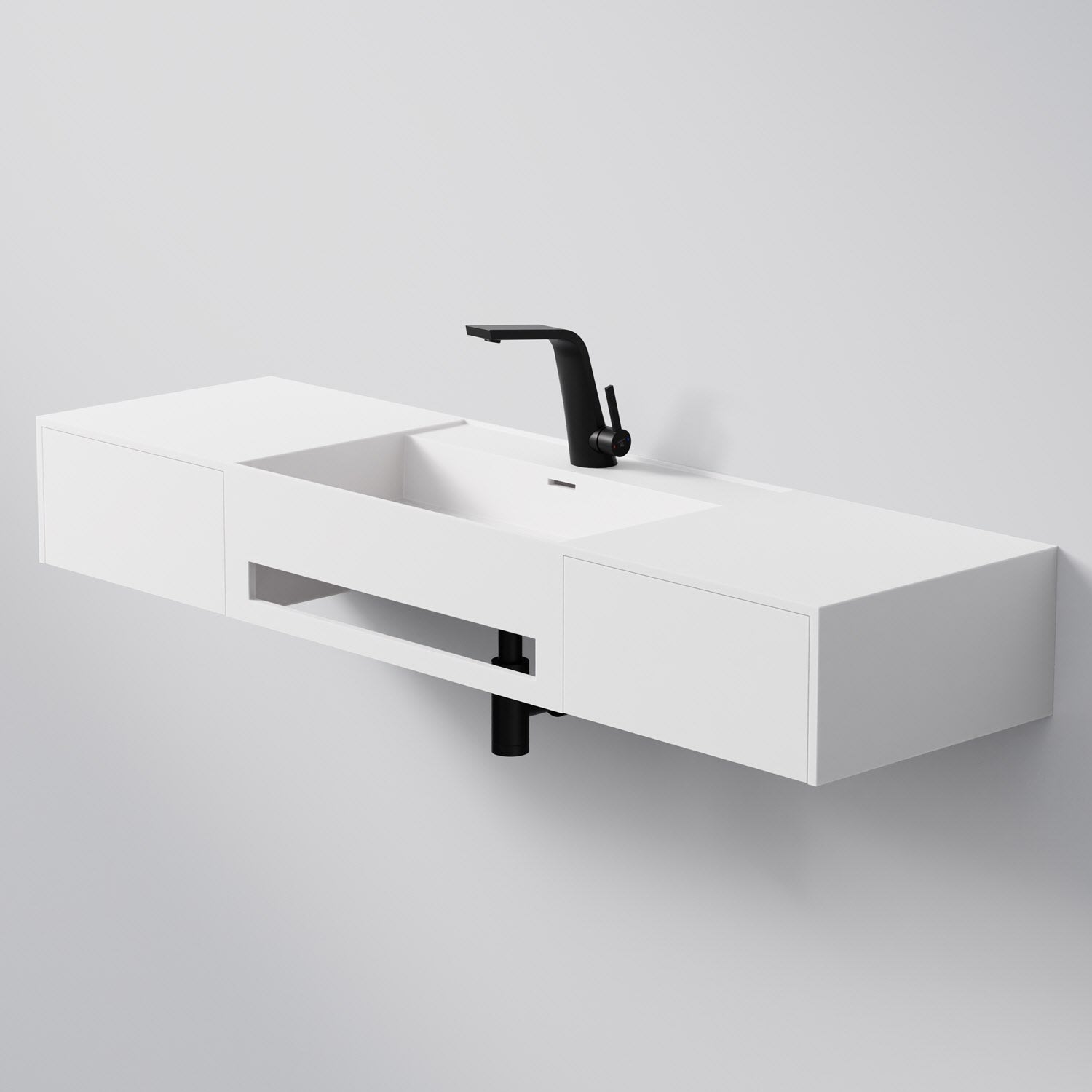 Steinberg Serie 443 Wandwaschtisch mit 2 Auszügen und Handtuchhalter aus Mineo Stone 140 x 40 cm