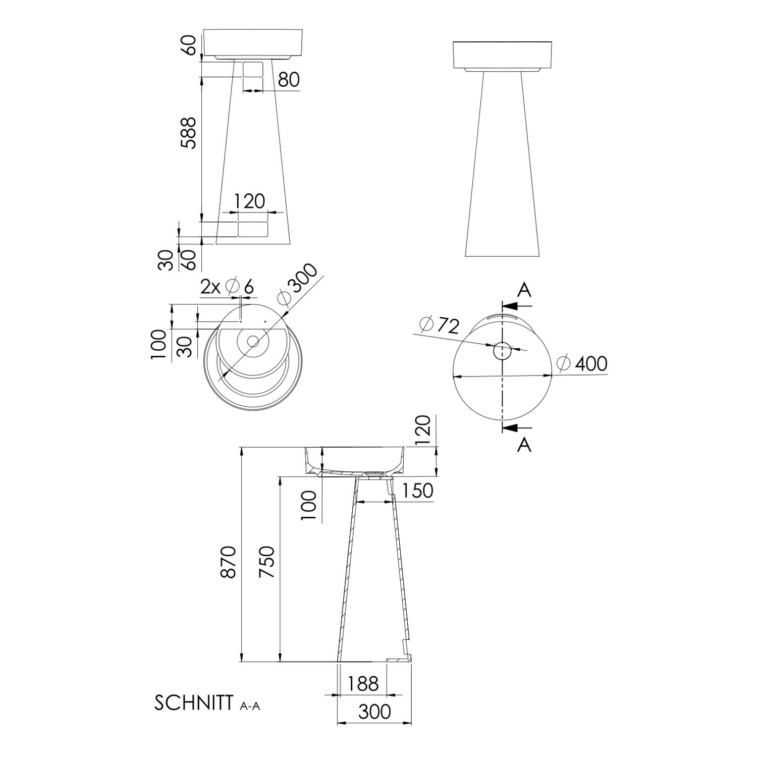 Steinberg Serie 445 Standwaschtisch aus Mineo Stone Ø 40 cm