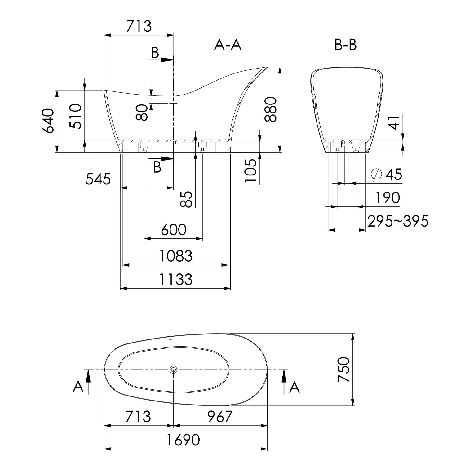 Steinberg Serie 490 freistehende Badewanne 169 x 75 cm