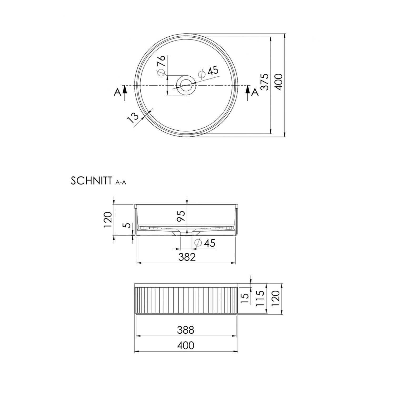 Steinberg Serie 740 Aufsatzwaschtisch Ø 40 cm