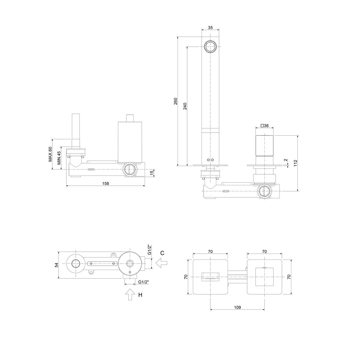 Steinkamp Life Waschtisch-Wandarmatur Ausladung 24 cm inkl. Grundkörper