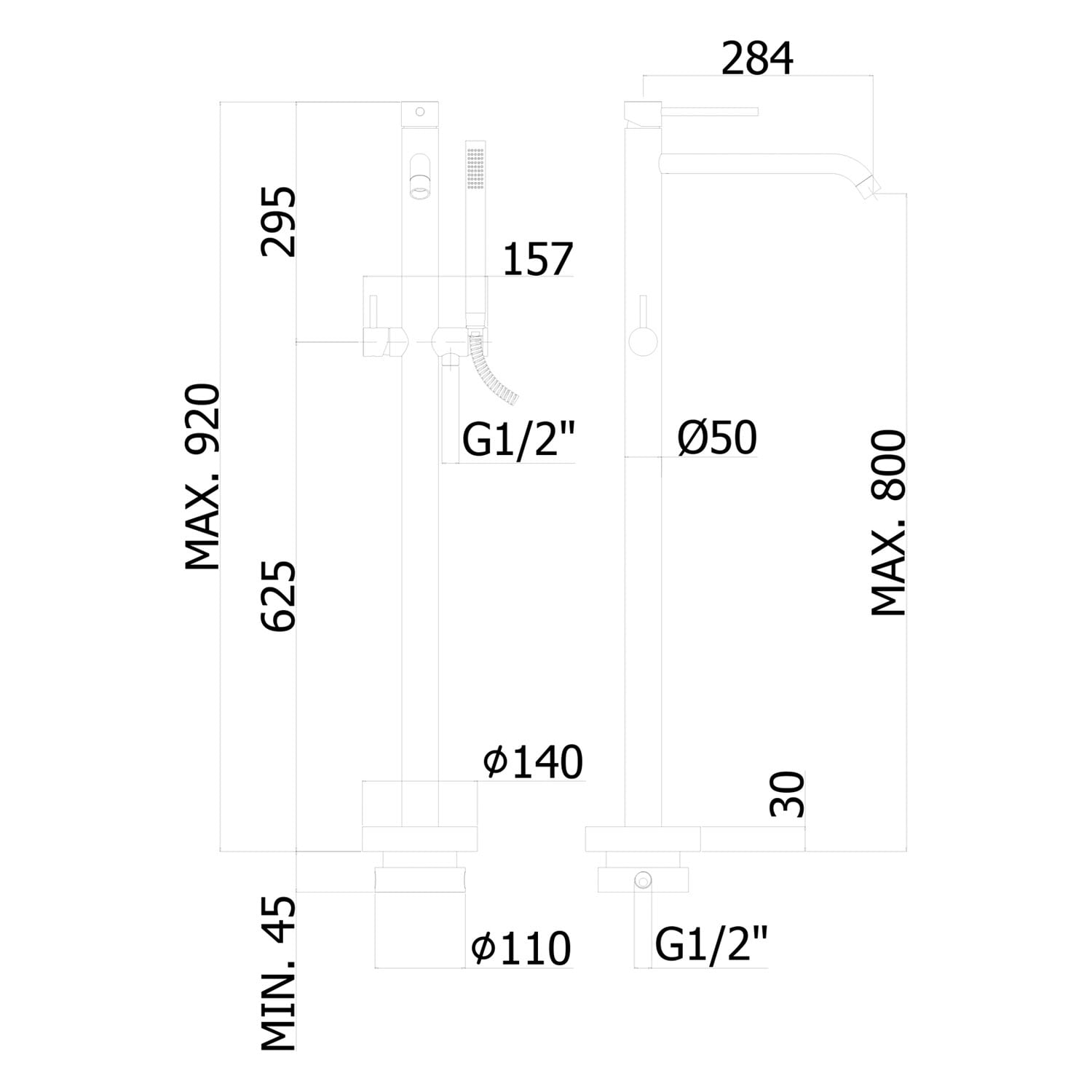 - perfekte Abmessungen für die Kombination mit freistehende Wannen