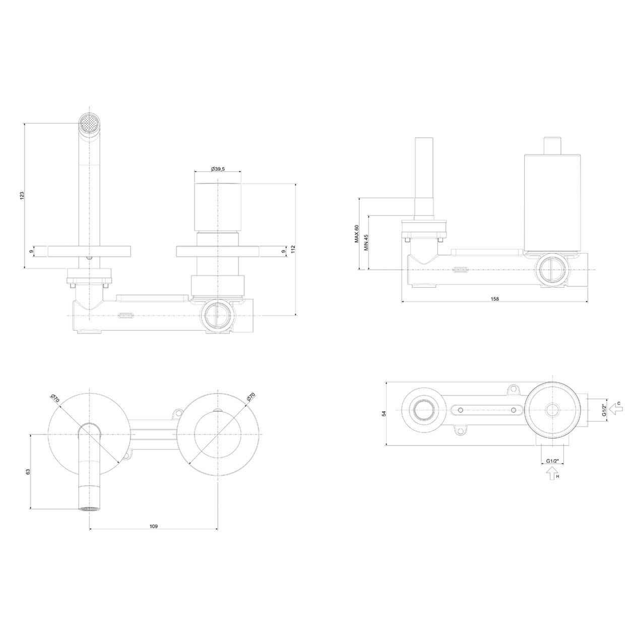 Steinkamp Living Wand-Waschtisch Einhebelmischer incl. Grundkörper, mit Wasserspar-Strahlregler 5L/Min, Ausladung 12,3 cm