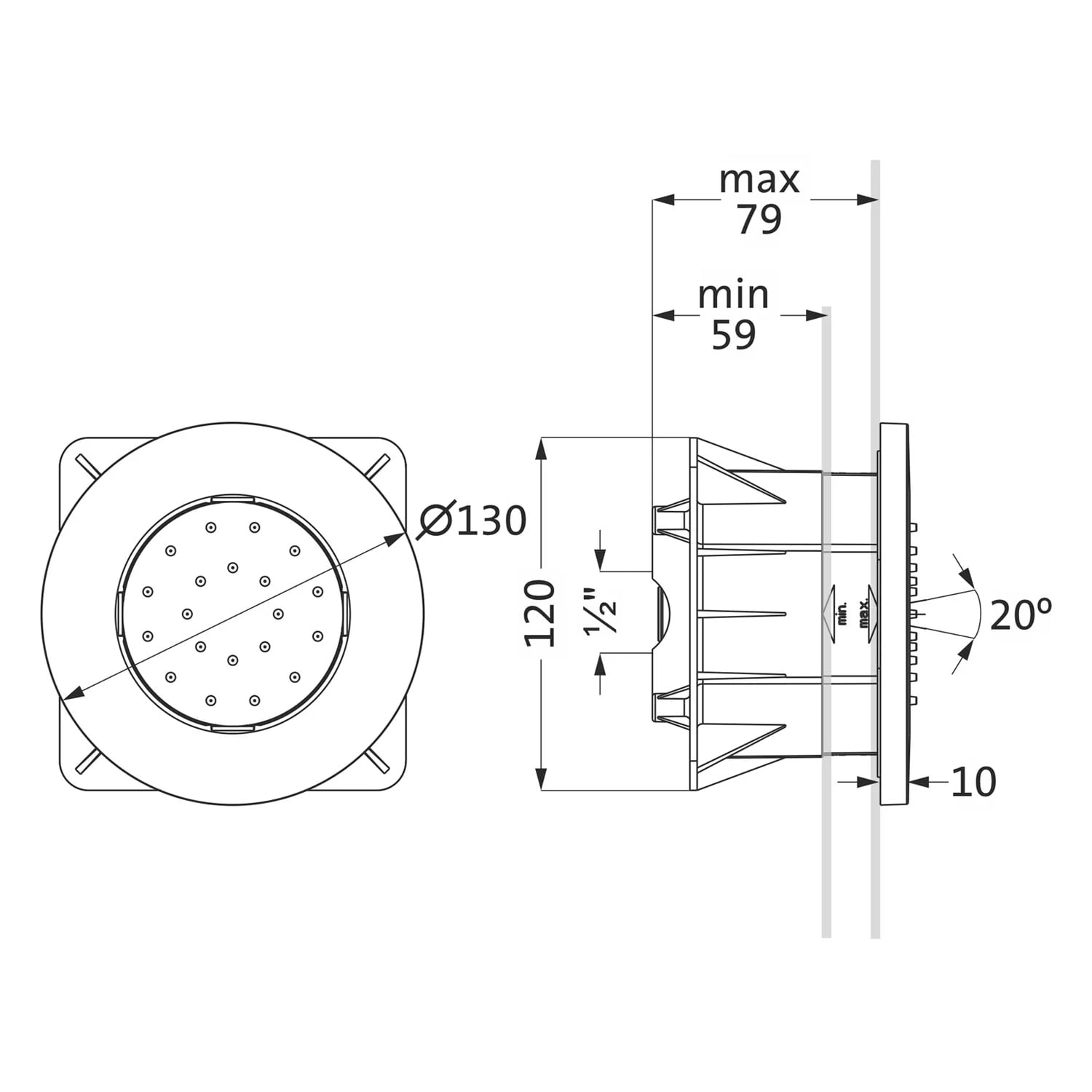 Unterputz-Seitenbrause rund