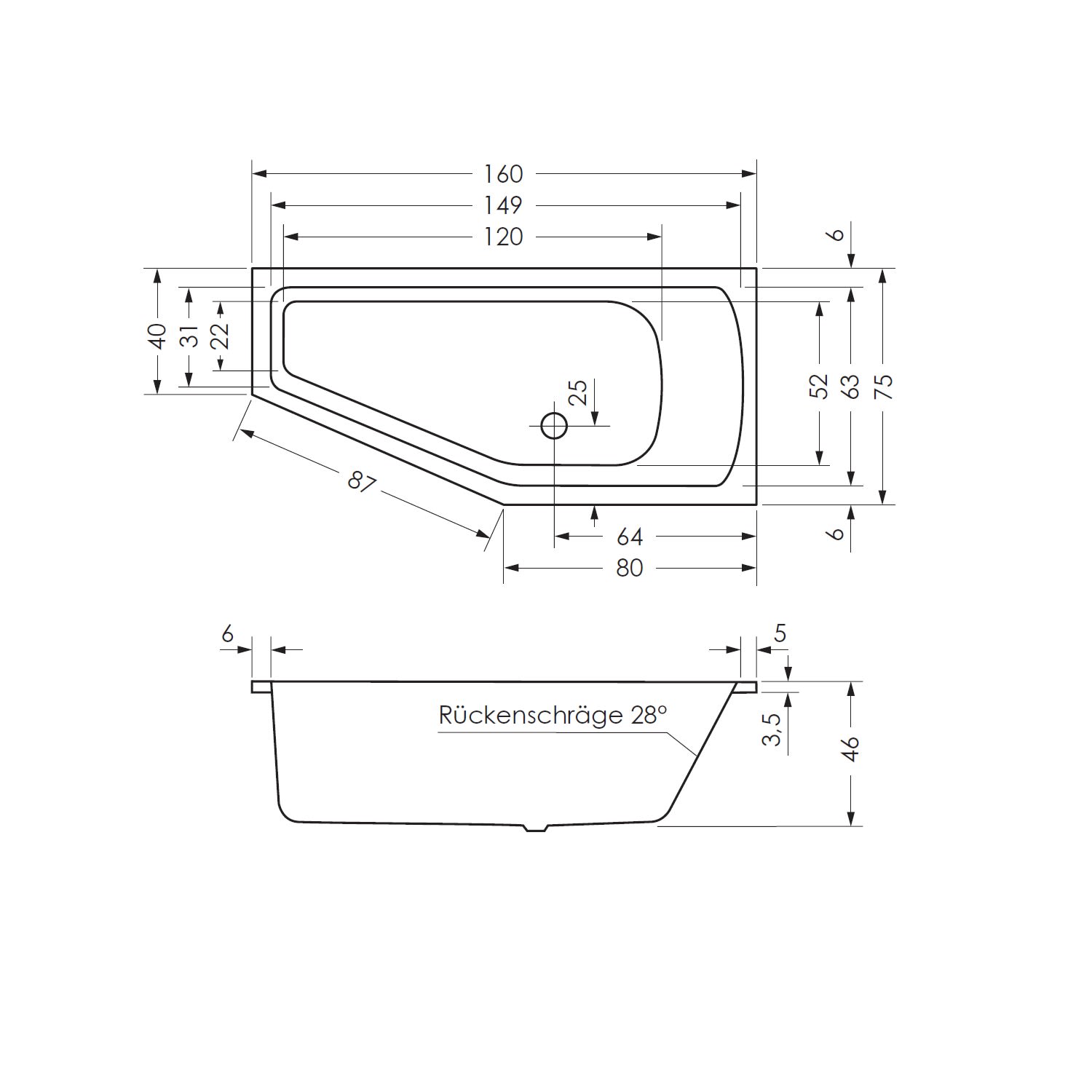Steinkamp Life Raumsparbadewanne 160 x 75 cm links
