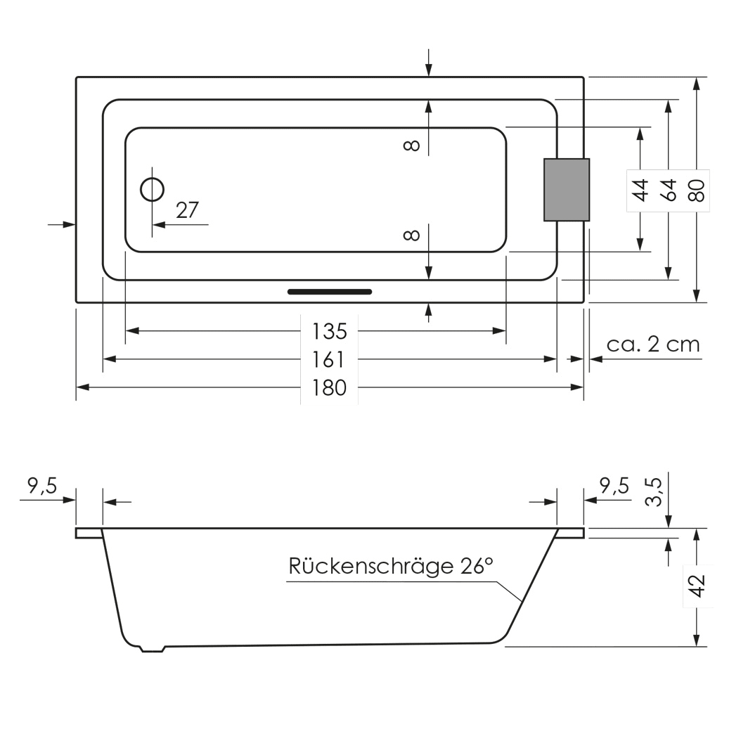 - Zur Installation der Wanne benötigen Sie entweder Wannenfüße oder den passenden Wannenträger. Bitte bestellen Sie Ihre Auswahl aus dem Zubehör mit.