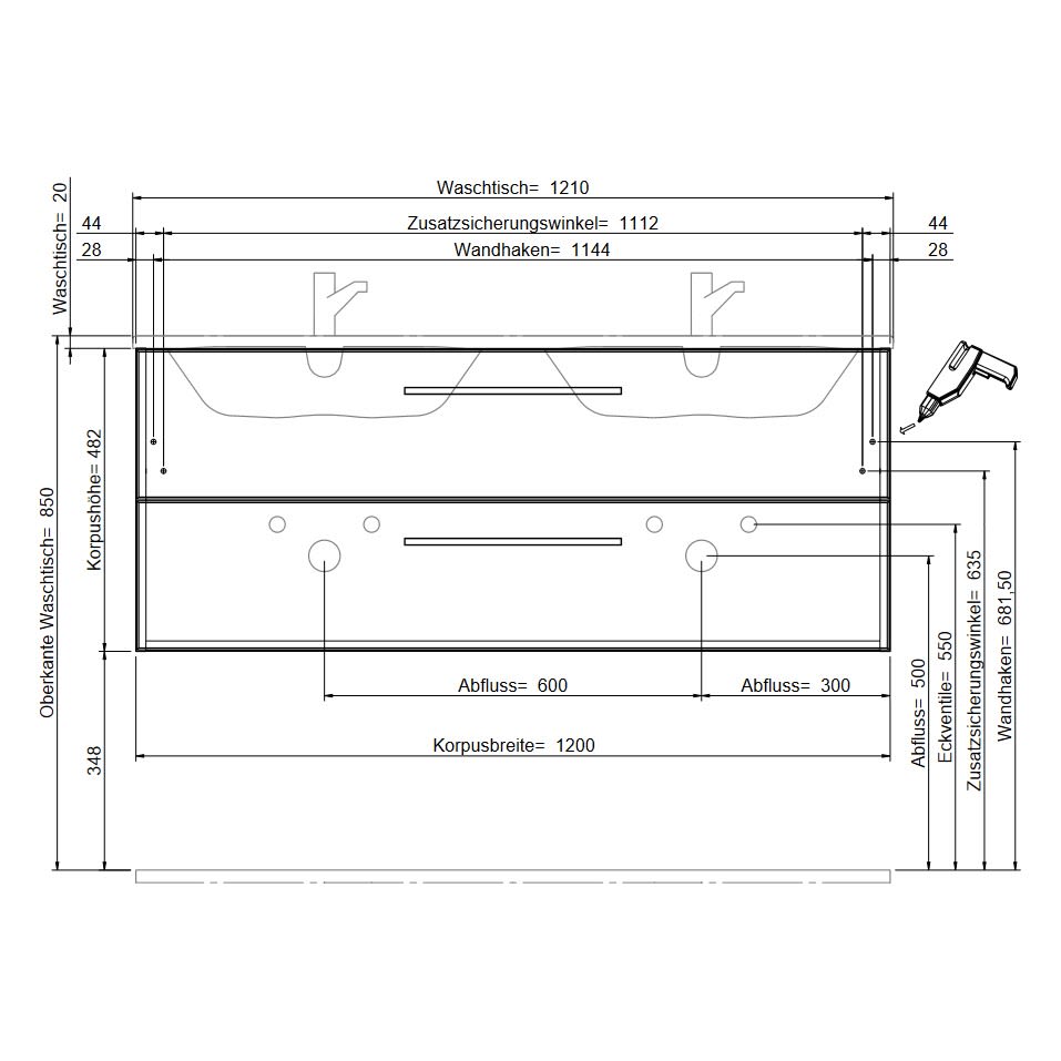 Steinkamp Joy 2.0 Doppel-Waschtischunterschrank 120 cm mit Pelipal Waschtisch