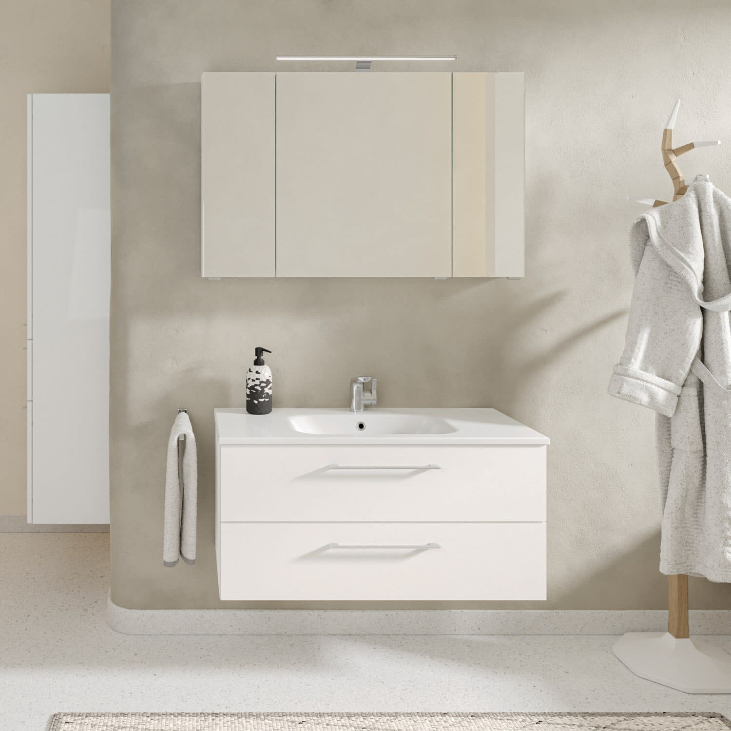 Kronenbach Plana 2.0 Spiegelschrank 100 cm mit 3 Türen und LED-Aufsatzleuchte