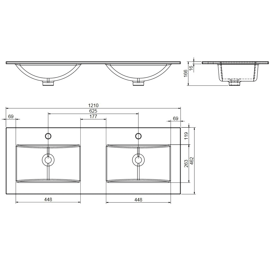 - mit 2 Hahnlöchern und 2 integrierten Überlaufen