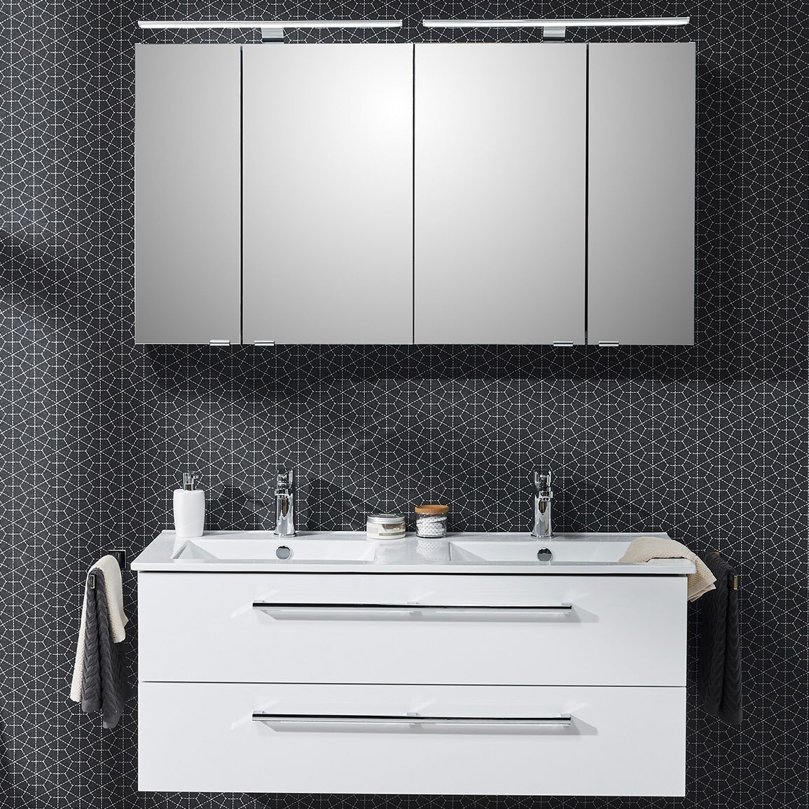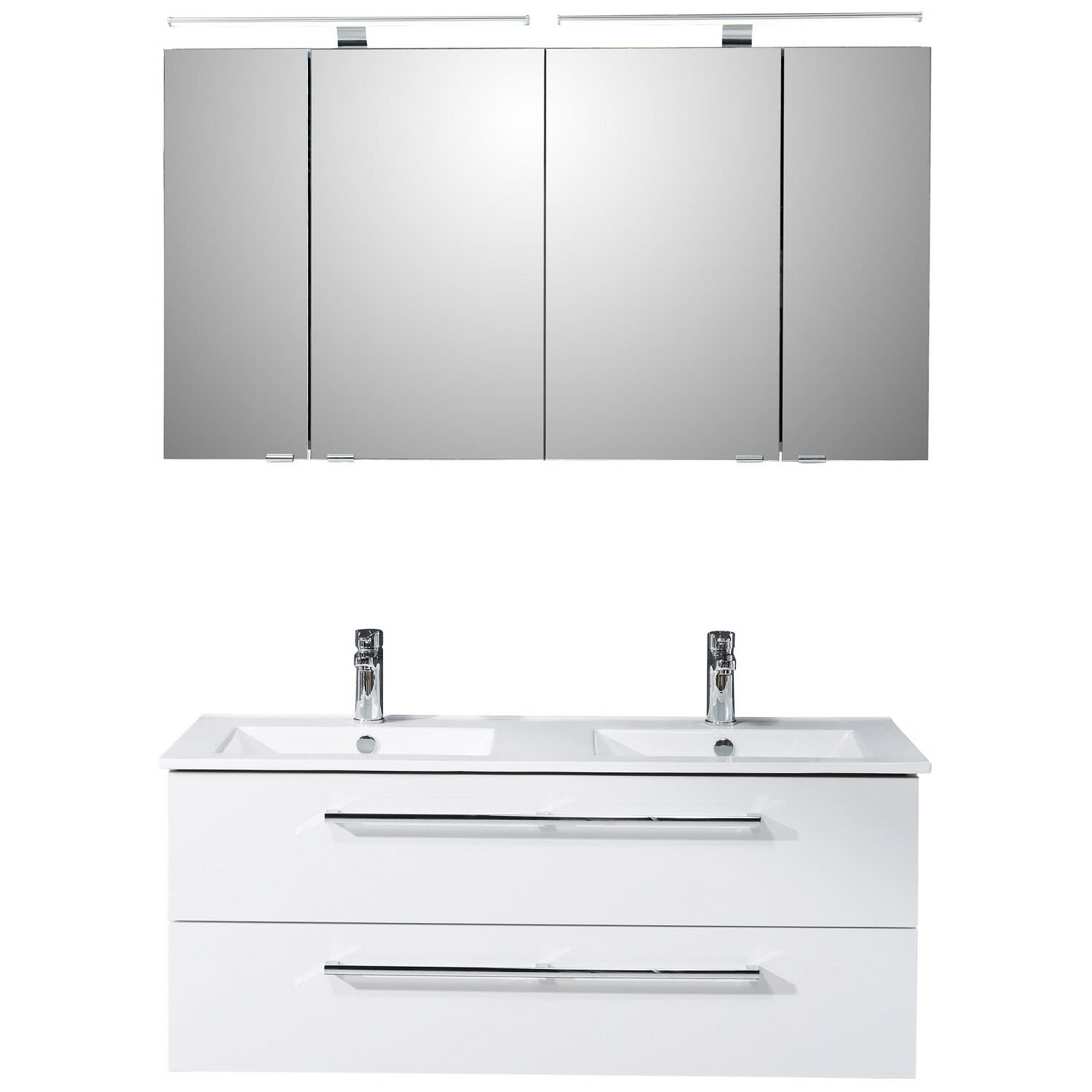 Steinkamp Life 2.0 Badmöbel Set 121 cm mit LED-Spiegelschrank, Doppelwaschtisch
