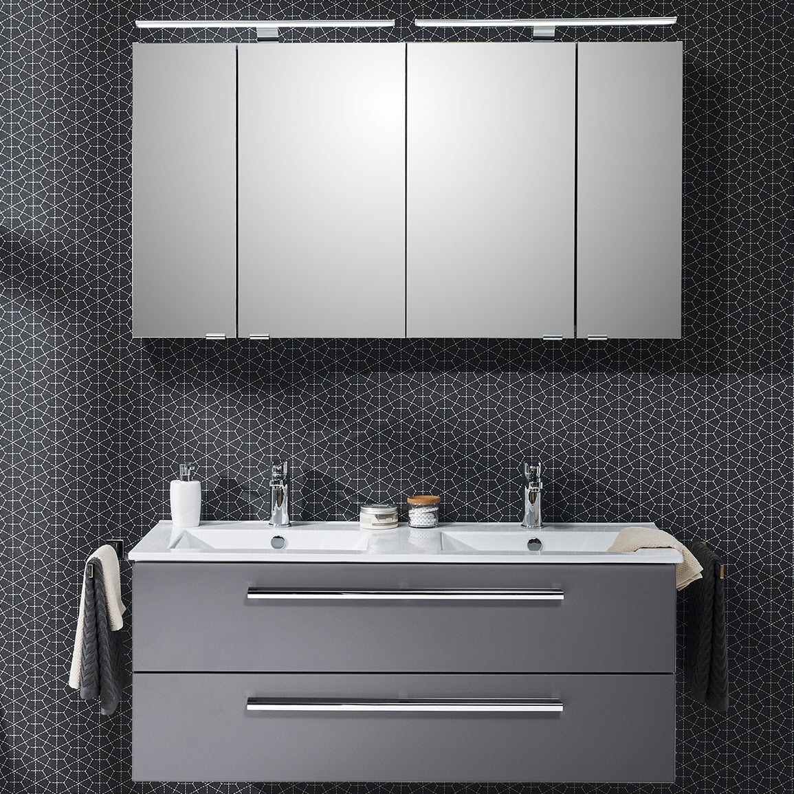 Steinkamp Life 2.0 Badmöbel Set 121 cm mit LED-Spiegelschrank, Doppelwaschtisch