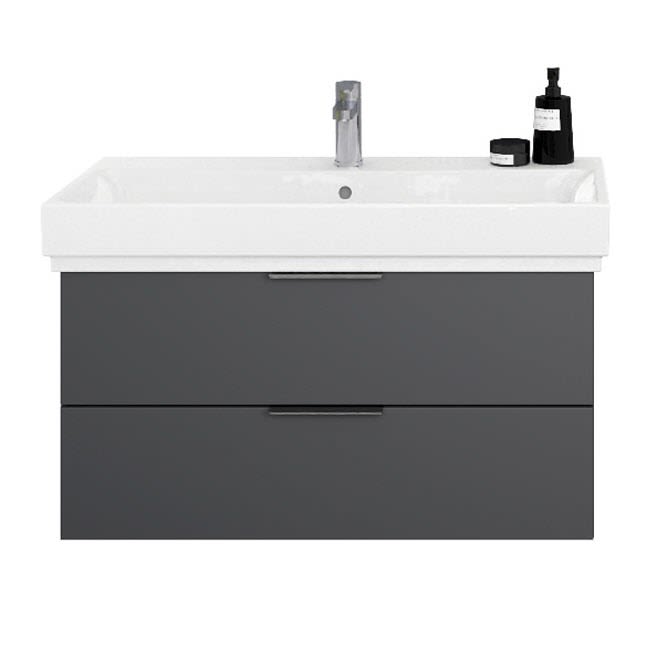 Kombinieren Sie das Design eines Markenwaschtischs mit einer attraktiven Stauraumlösung der Kollektion Living 2.0.