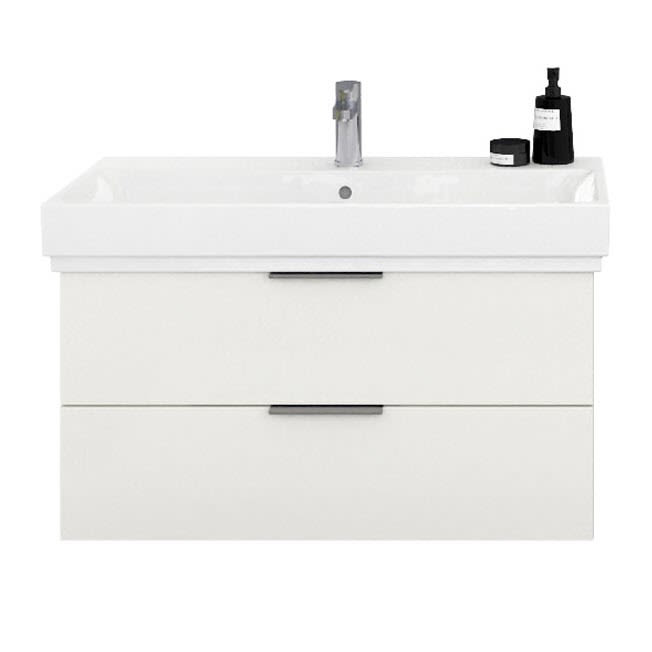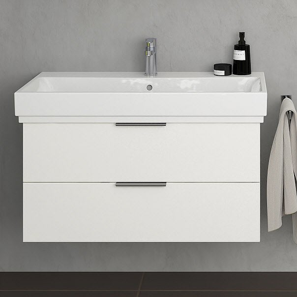 Kombinieren Sie das Design eines Markenwaschtischs mit einer attraktiven Stauraumlösung der Kollektion Living 2.0.