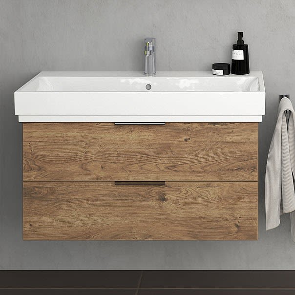 Kombinieren Sie das Design eines Markenwaschtischs mit einer attraktiven Stauraumlösung der Kollektion Living 2.0.