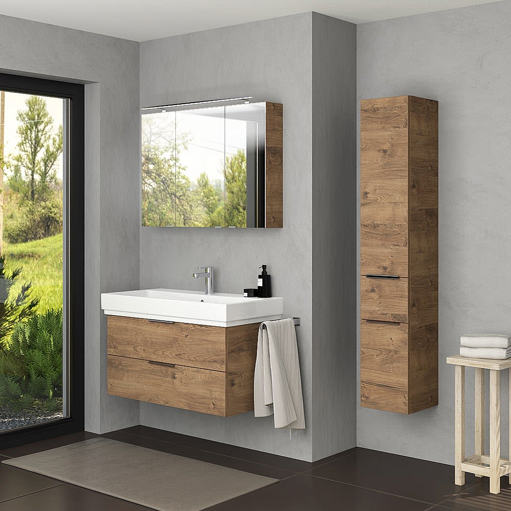 Ergänzen Sie Ihr Badezimmer ganz nach Wunsch mit dem passenden Spiegelschrank oder Hochschrank – für ein rundum stimmiges Einrichtungskonzept.