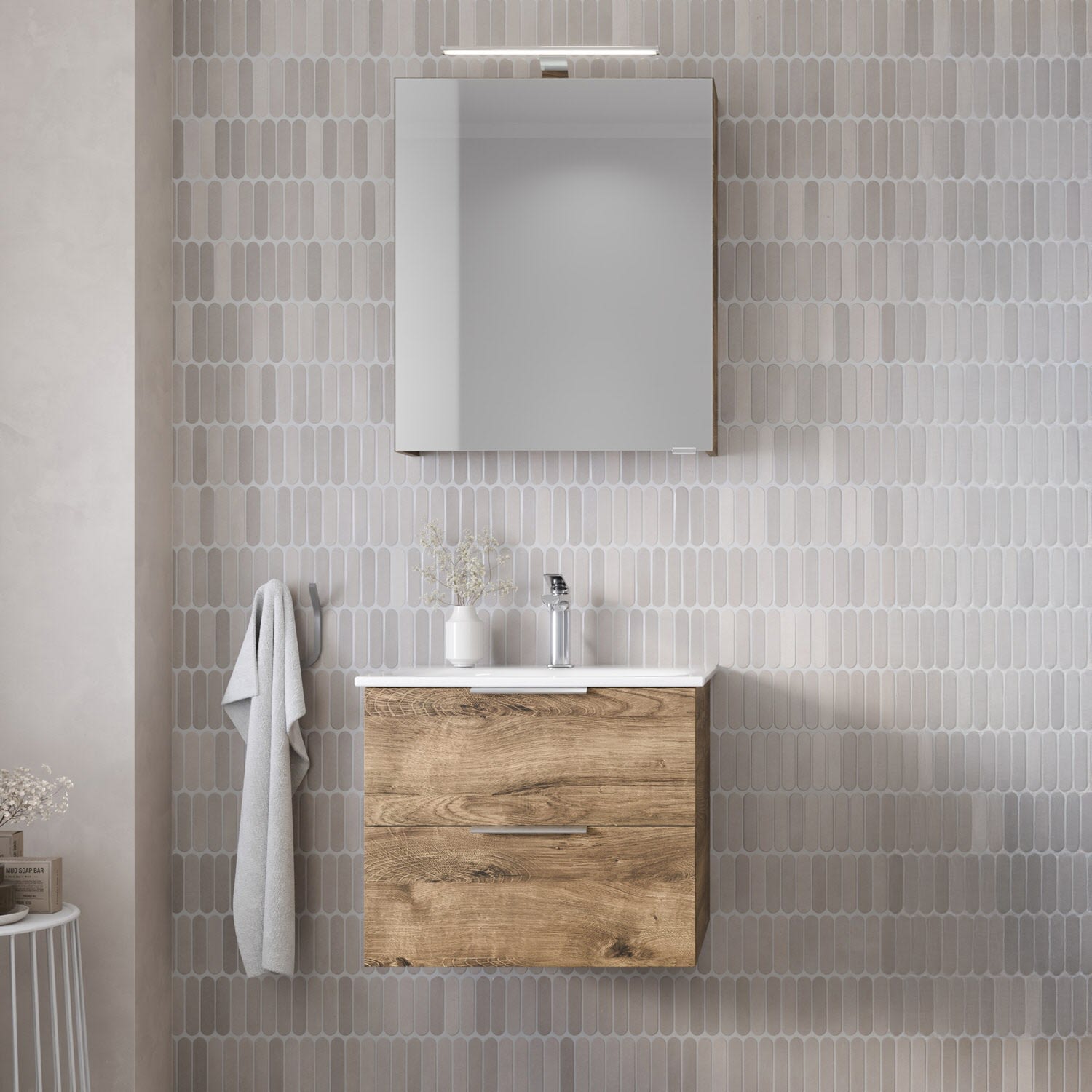 Ergänzen Sie Ihr Badezimmer ganz nach Wunsch mit dem passenden Spiegelschrank oder Hochschrank – für ein rundum stimmiges Einrichtungskonzept.