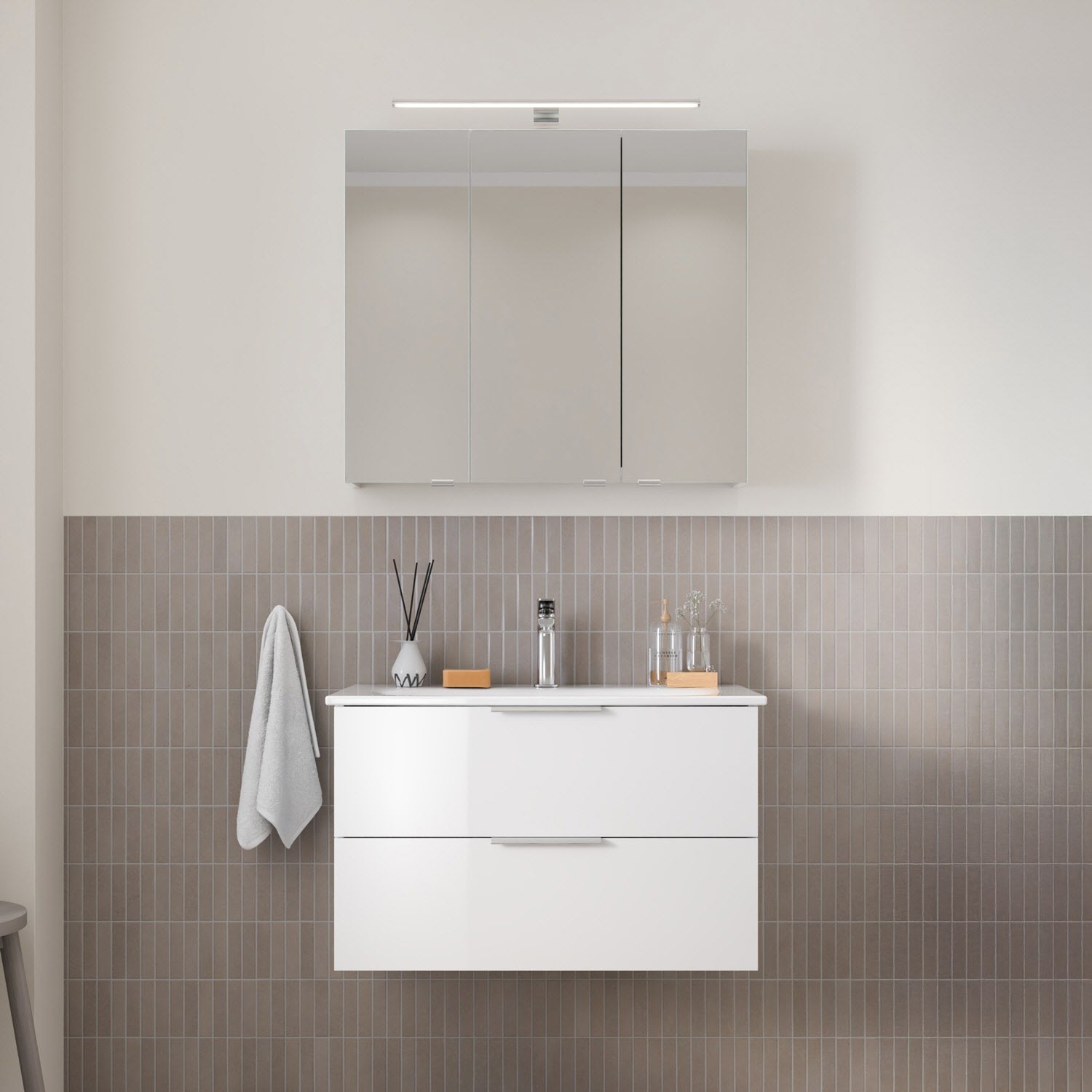 Steinkamp Living 2.0 Spiegelschrank 80 cm mit 3 Türen und LED-Aufsatzleuchte