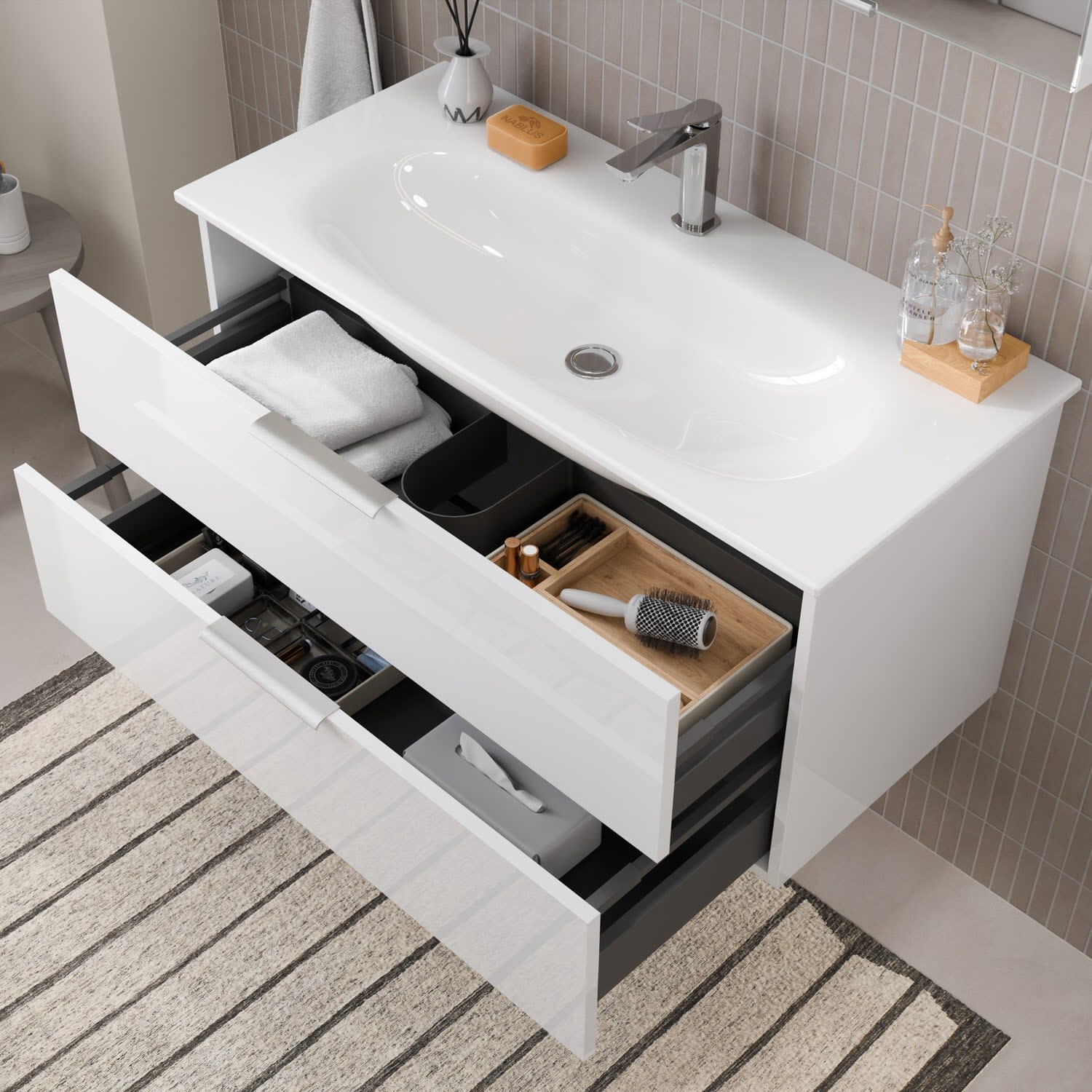 Flexibel. Passgenau. Stilvoll. – Die Badkollektion, die sich Ihrem Waschtisch anpasst!