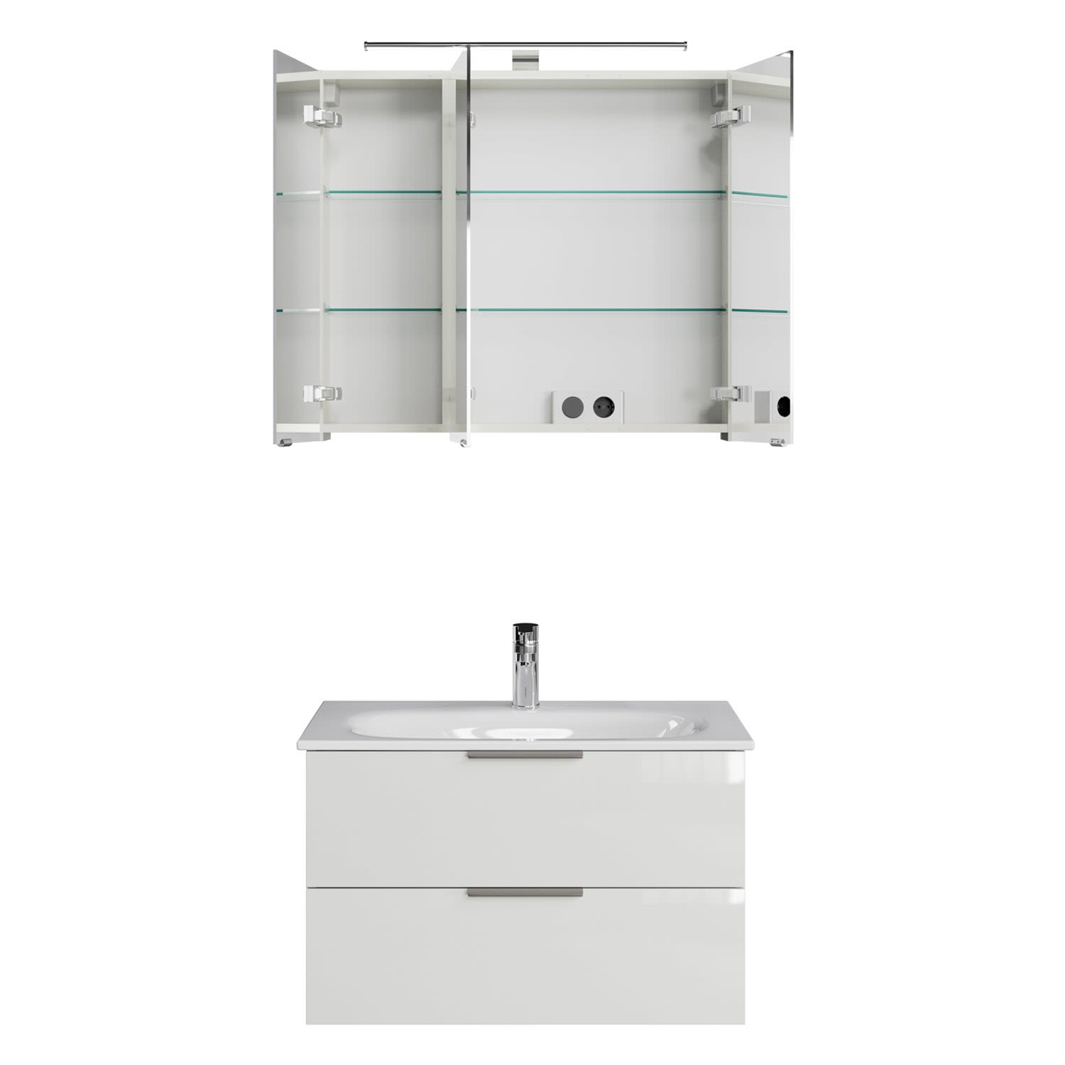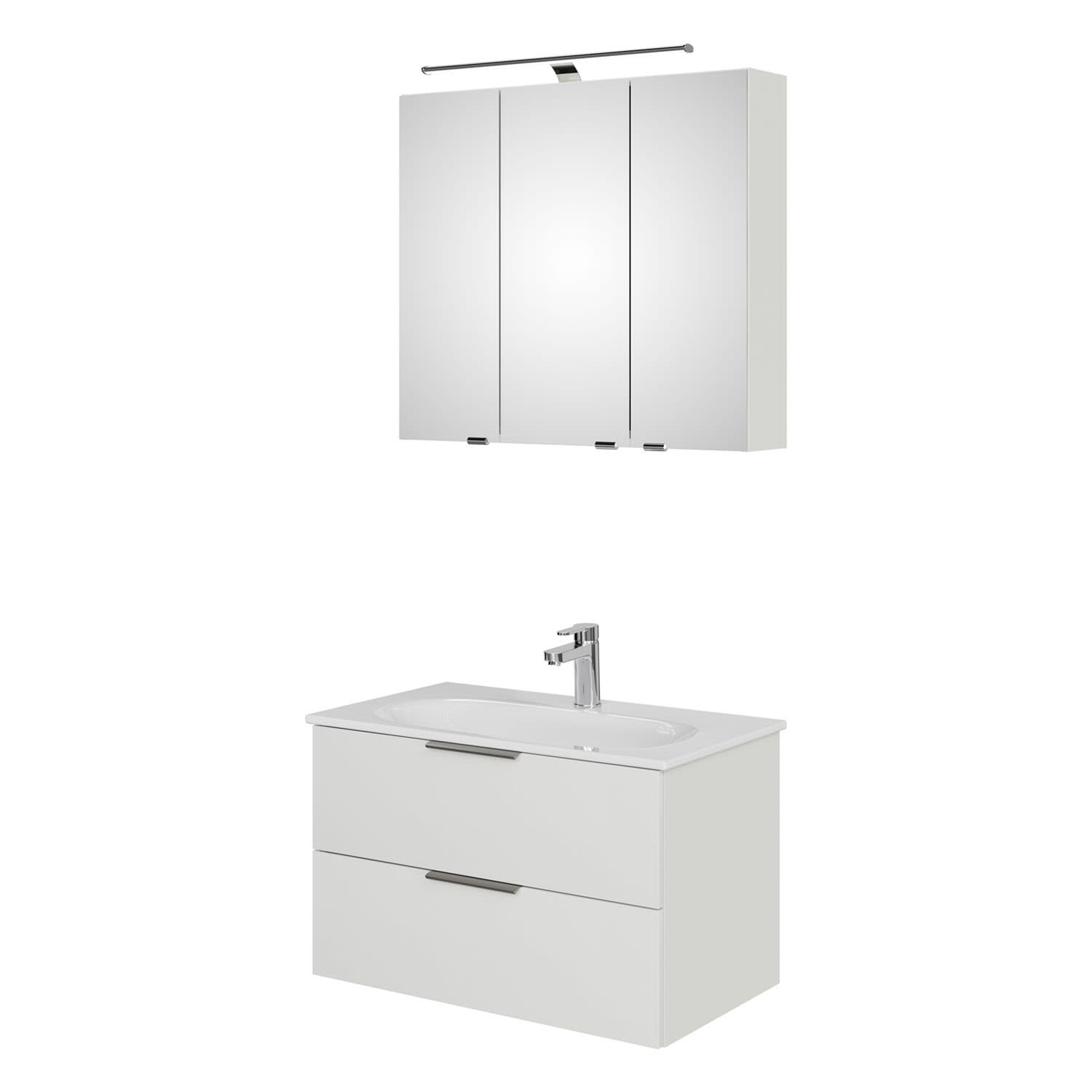 Steinkamp Living 2.0 / GROHE Essence Badmöbel Set 80 cm mit Spiegelschrank