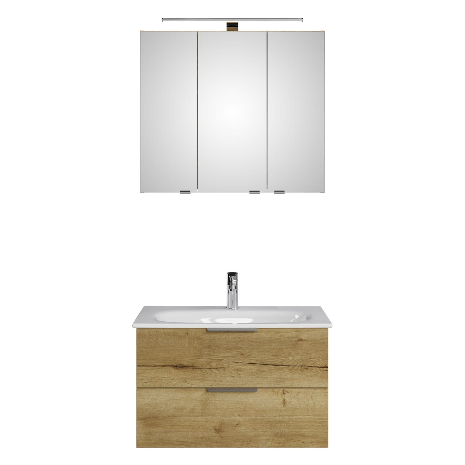 Steinkamp Living 2.0 / GROHE Essence Badmöbel Set 80 cm mit Spiegelschrank
