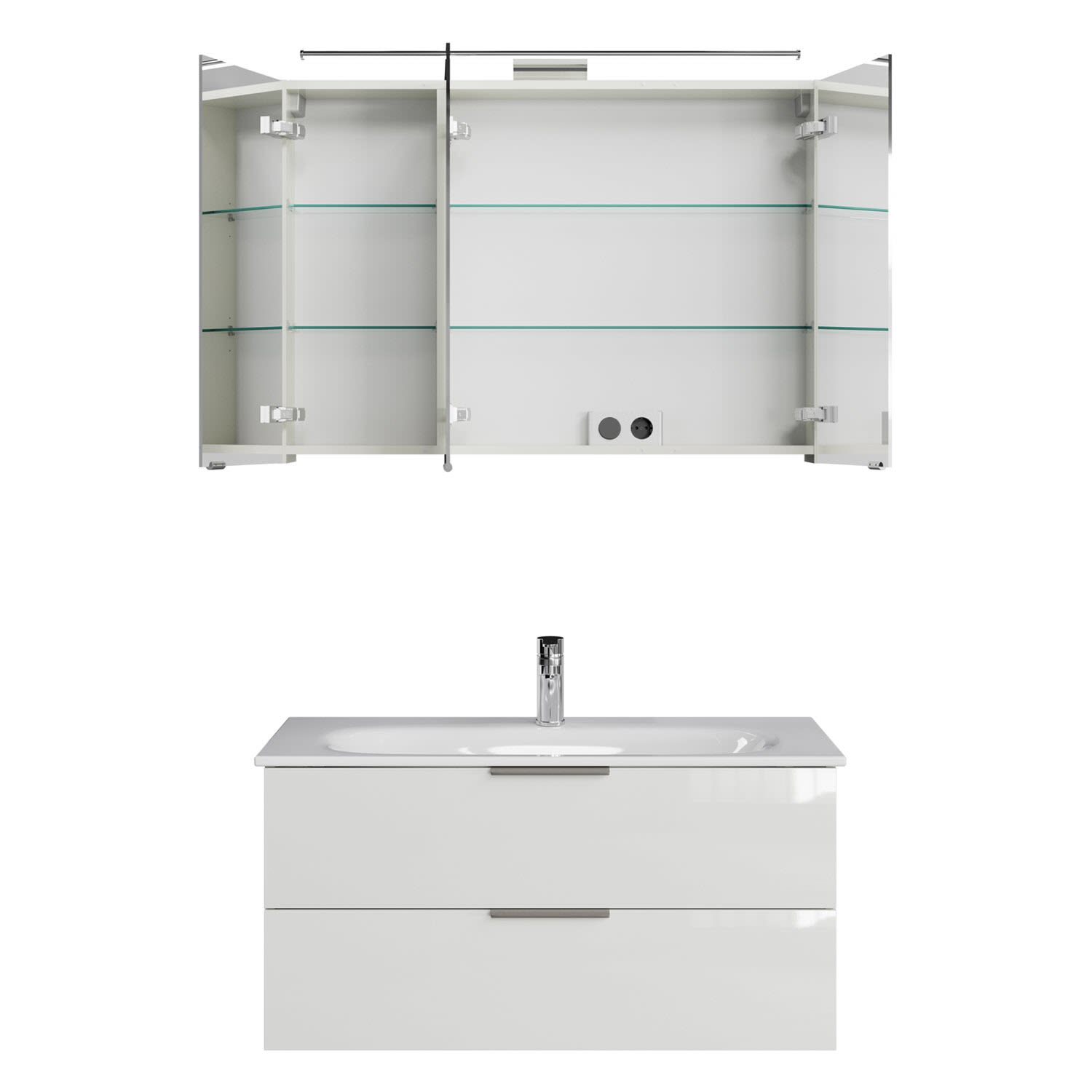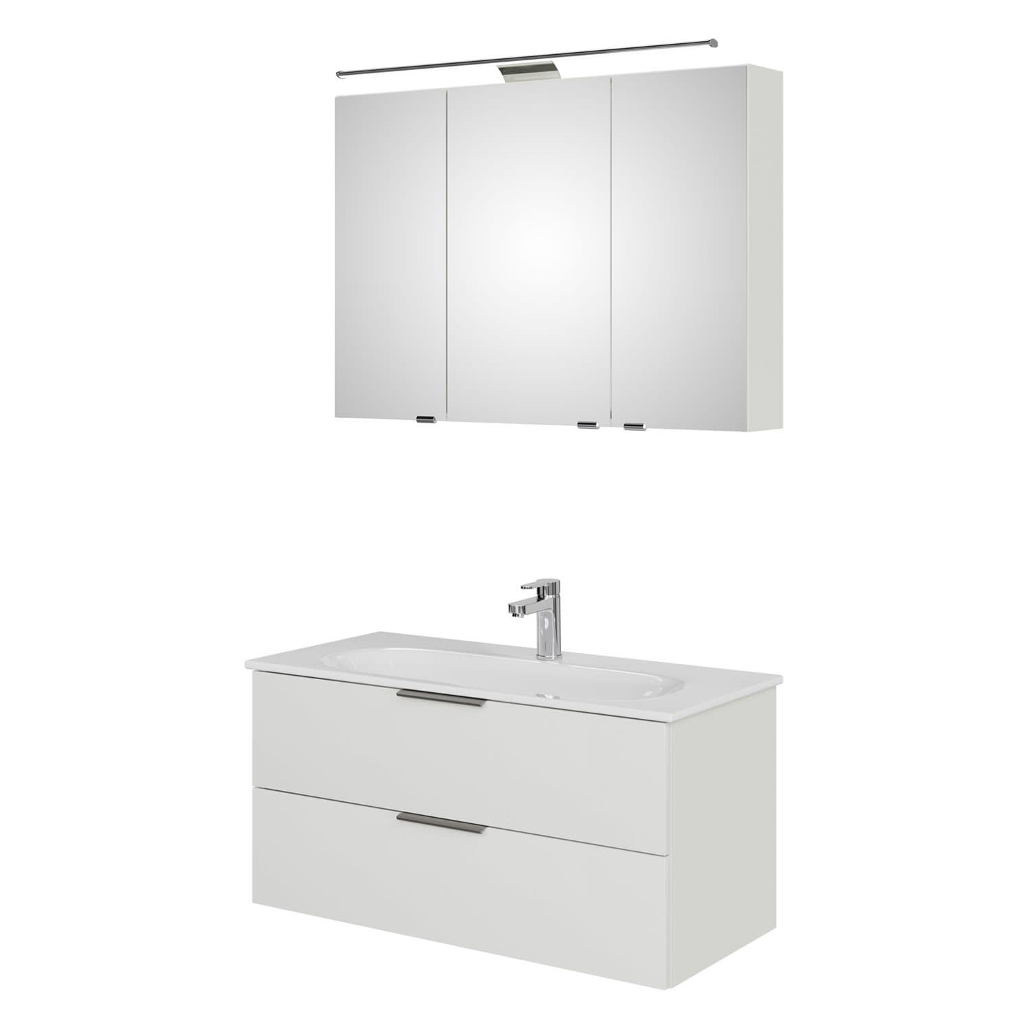 Steinkamp Living 2.0 / GROHE Essence Badmöbel Set 100 cm mit Spiegelschrank