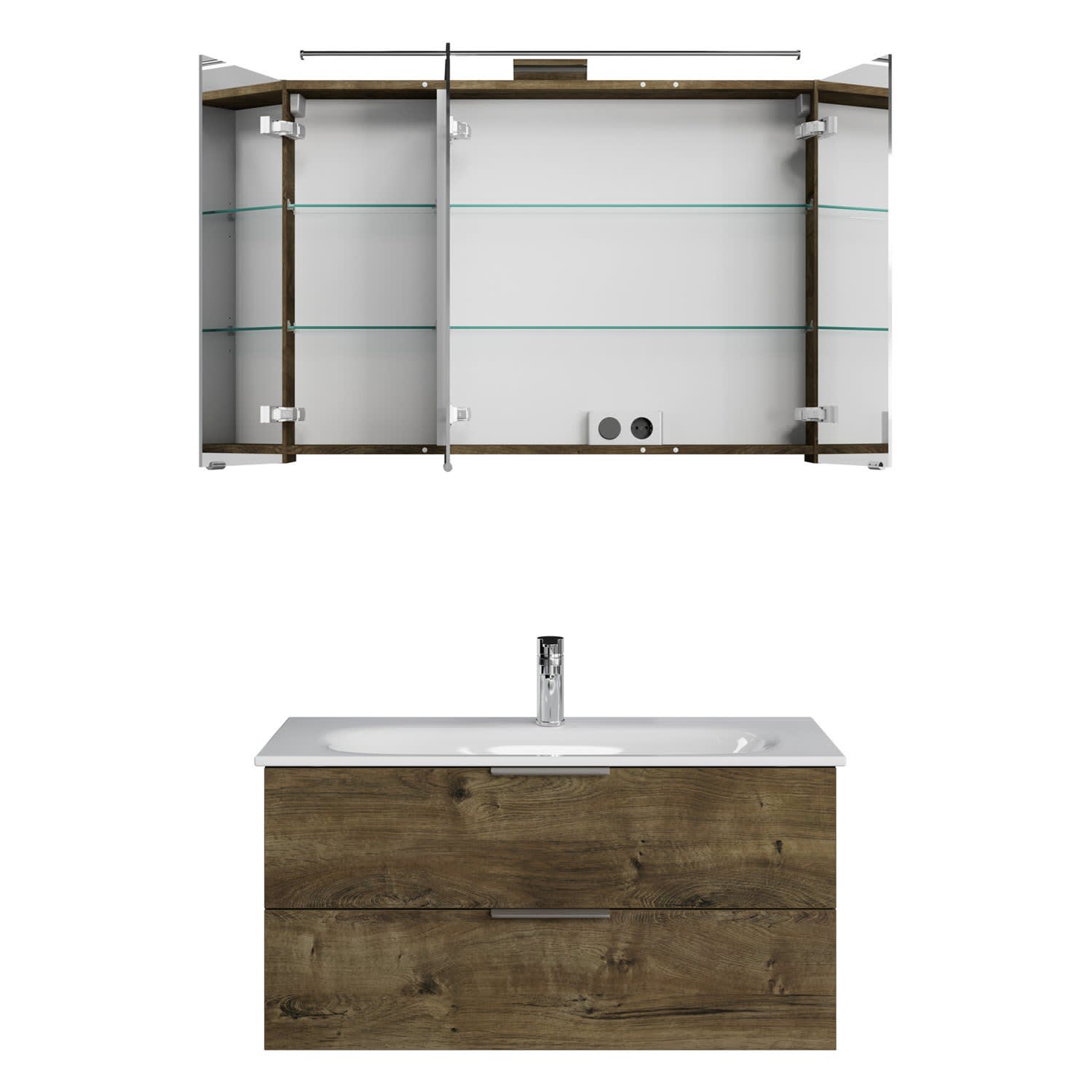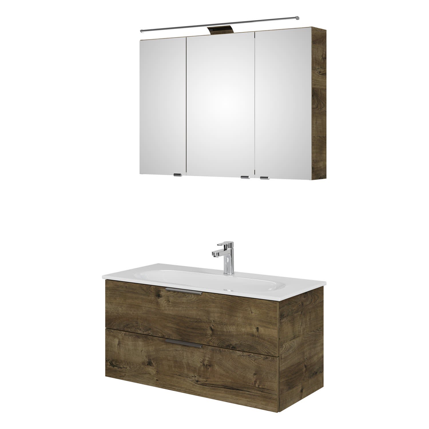 Steinkamp Living 2.0 / GROHE Essence Badmöbel Set 100 cm mit Spiegelschrank