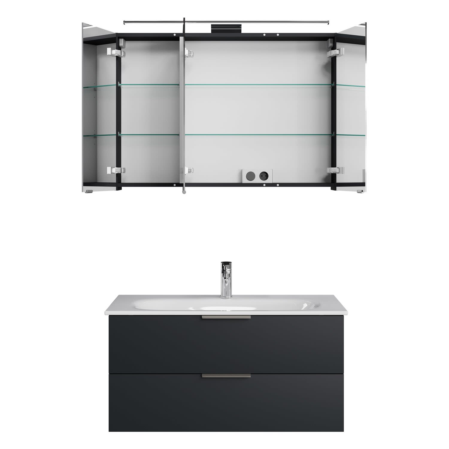 Steinkamp Living 2.0 / GROHE Essence Badmöbel Set 100 cm mit Spiegelschrank