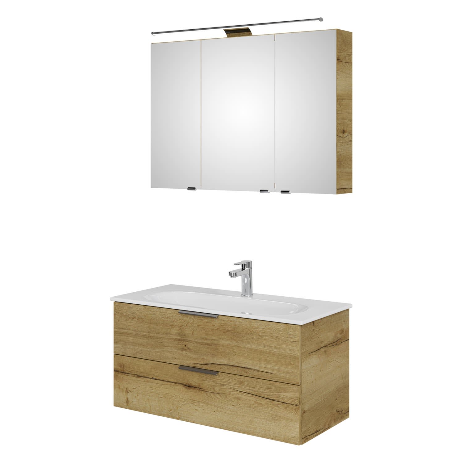 Steinkamp Living 2.0 / GROHE Essence Badmöbel Set 100 cm mit Spiegelschrank