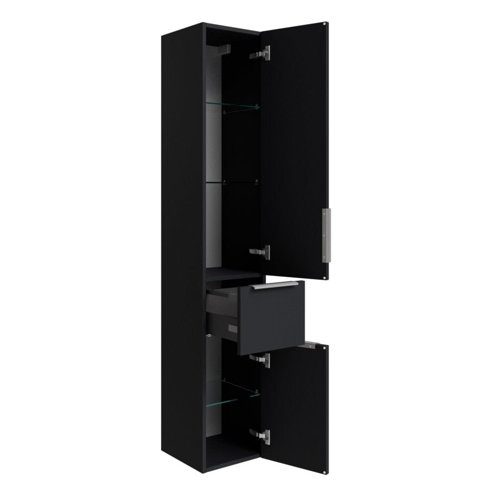 Der Hochschrank der Kollektion überzeugt durch seine Funktionalität, eine moderne Ausstattung und jede Menge Stauraum – ideal zur Ergänzung der Waschtischunterschränke der Kollektion Living 2.0.