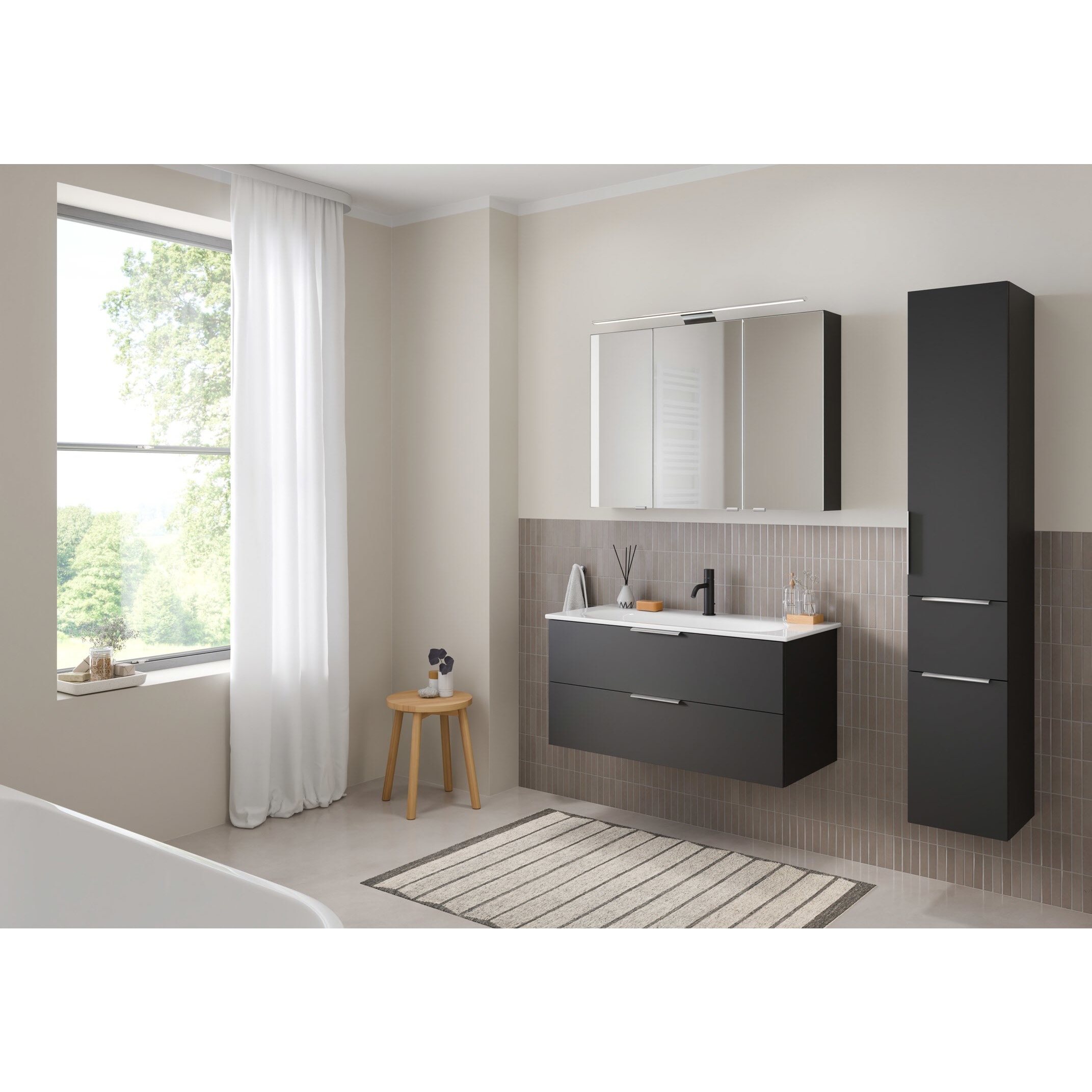 Flexibel. Passgenau. Stilvoll. – Die Badkollektion, die sich Ihrem Waschtisch anpasst!