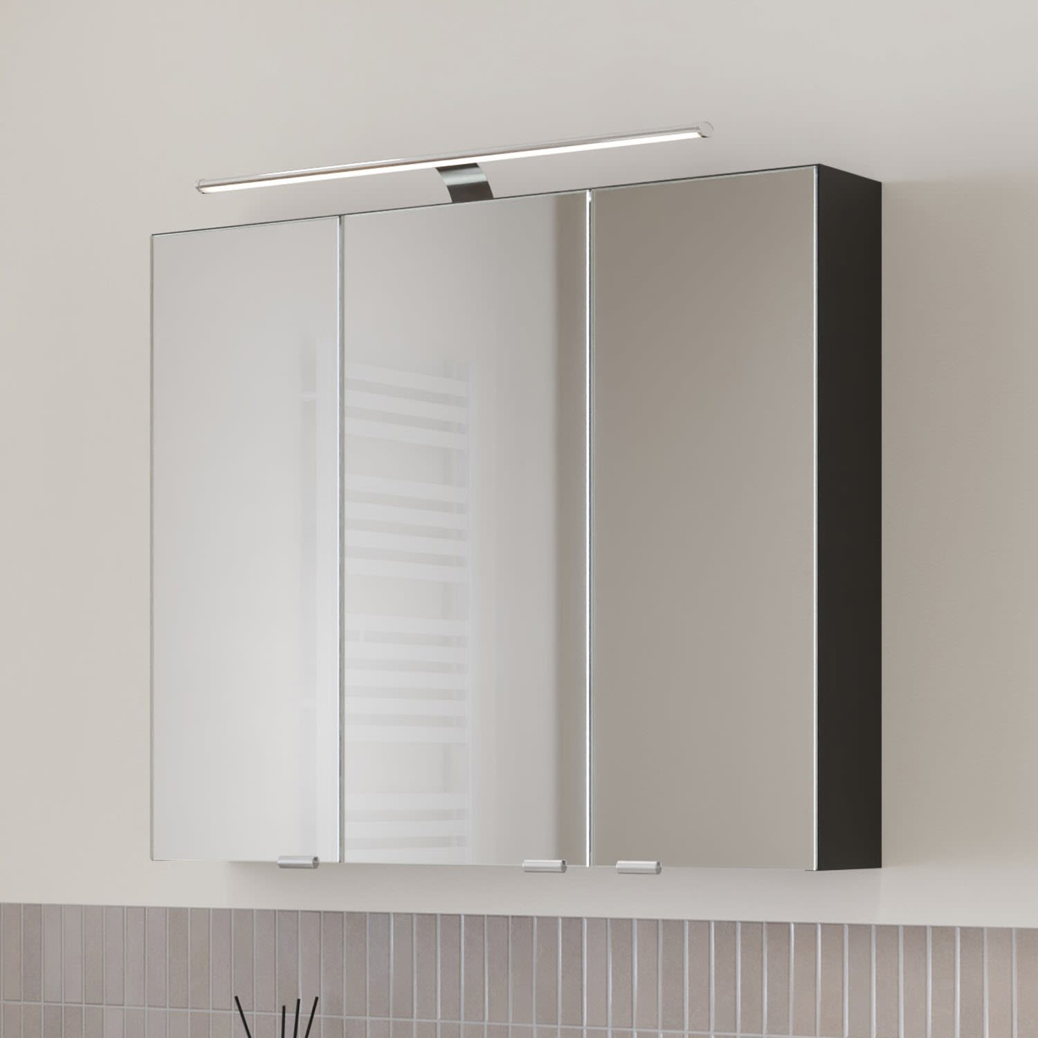 Steinkamp Living 2.0 Spiegelschrank 80 cm mit 3 Türen und LED-Aufsatzleuchte