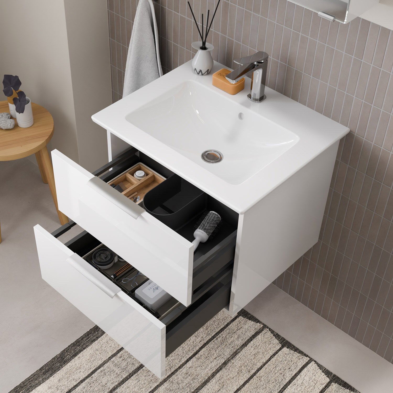 Flexibel. Passgenau. Stilvoll. – Die Badkollektion, die sich Ihrem Waschtisch anpasst!