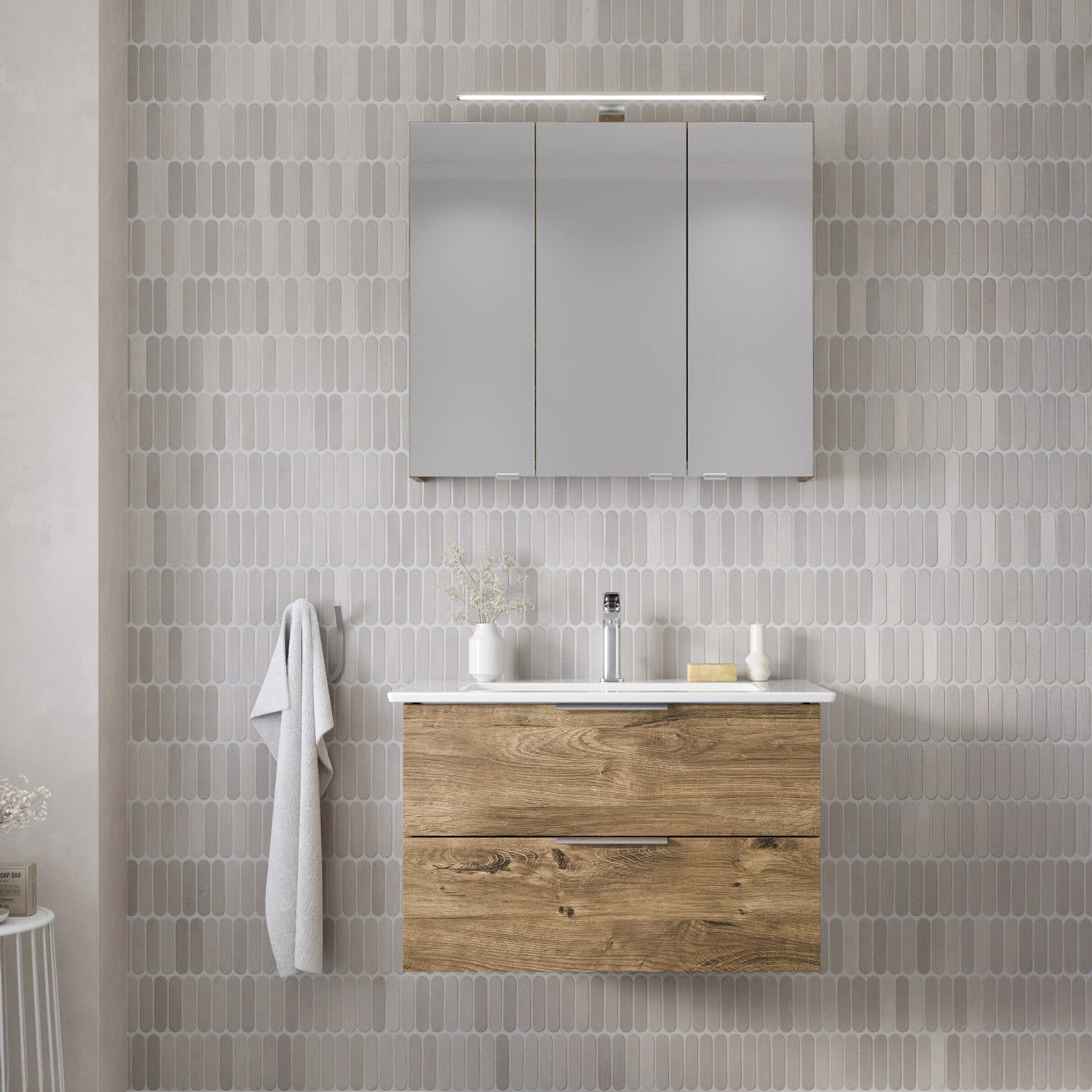 Steinkamp Living 2.0 Spiegelschrank 80 cm mit 3 Türen und LED-Aufsatzleuchte