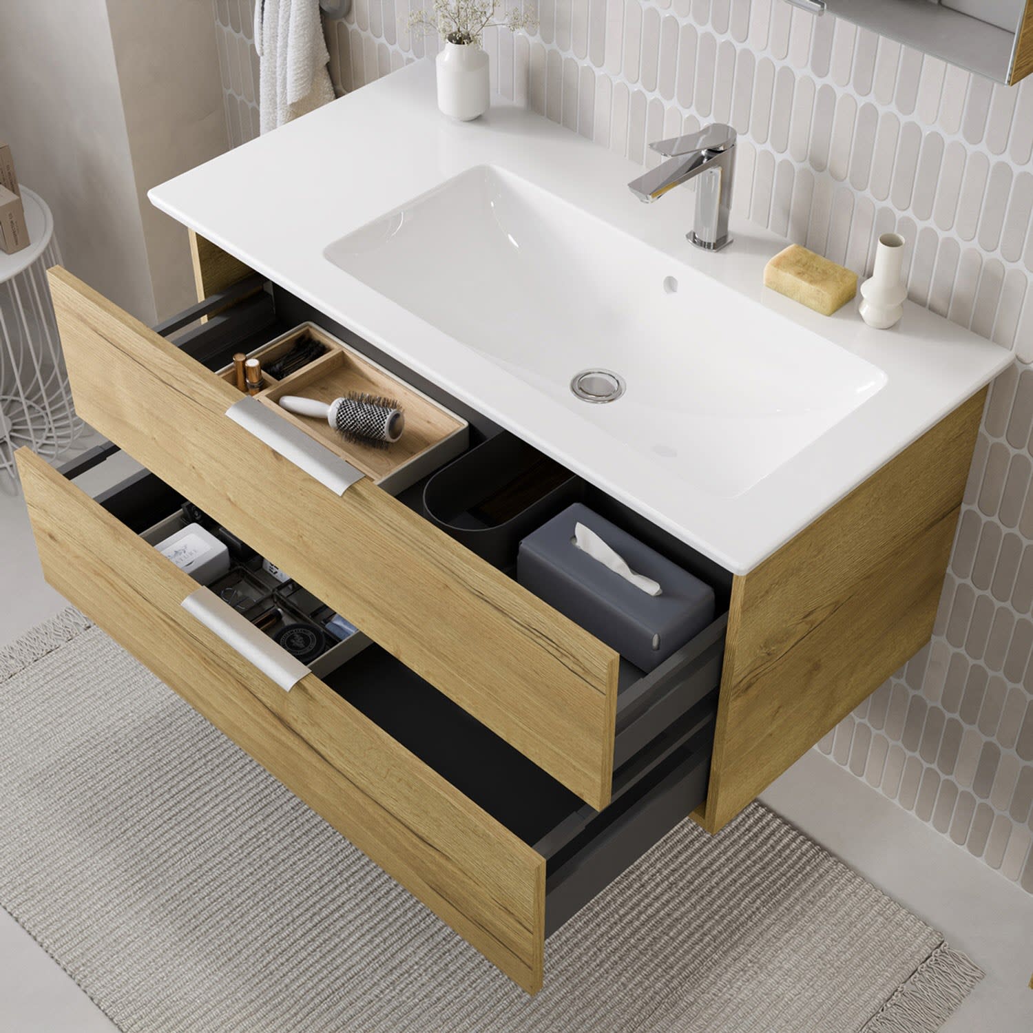 Flexibel. Passgenau. Stilvoll. – Die Badkollektion, die sich Ihrem Waschtisch anpasst!