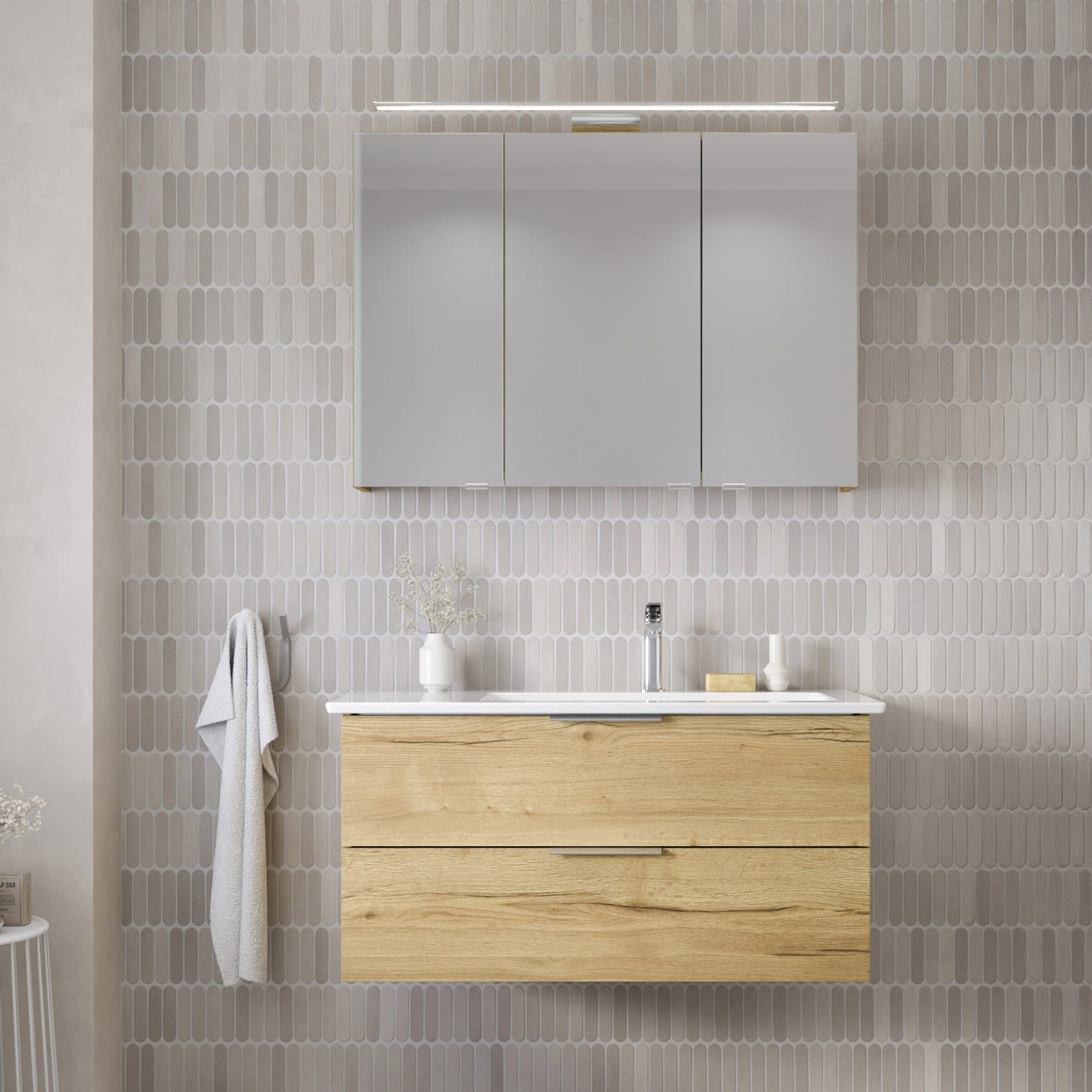 Steinkamp Living 2.0 Spiegelschrank 100 cm mit 3 Türen und LED-Aufsatzleuchte