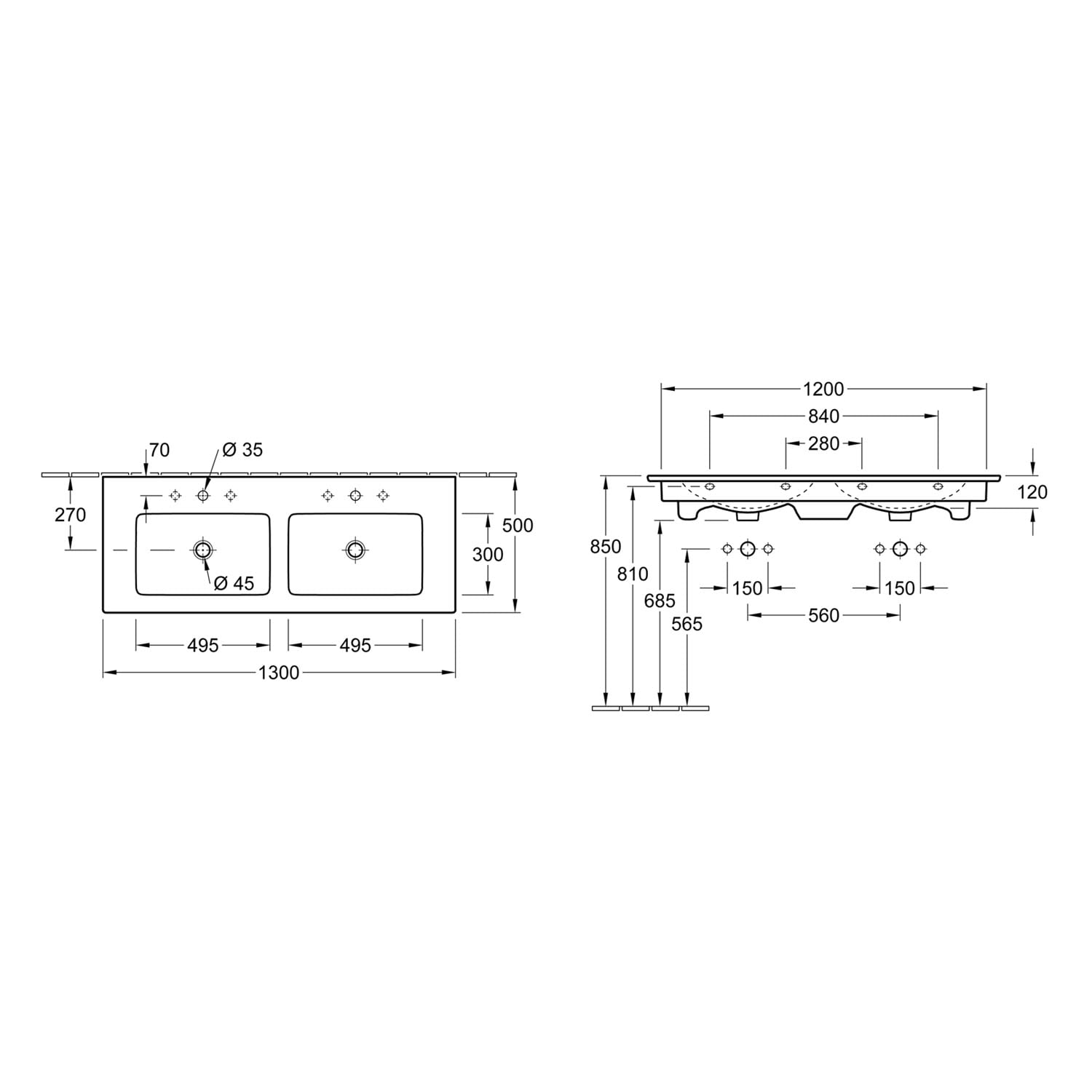 Steinkamp Living 2.0 / Villeroy & Boch Venticello Doppel-Waschtisch mit Unterschrank 130 cm