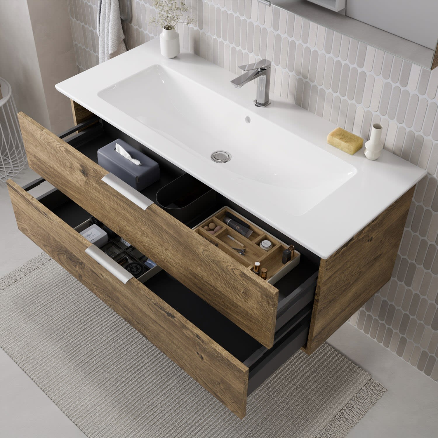 Flexibel. Passgenau. Stilvoll. – Die Badkollektion, die sich Ihrem Waschtisch anpasst!